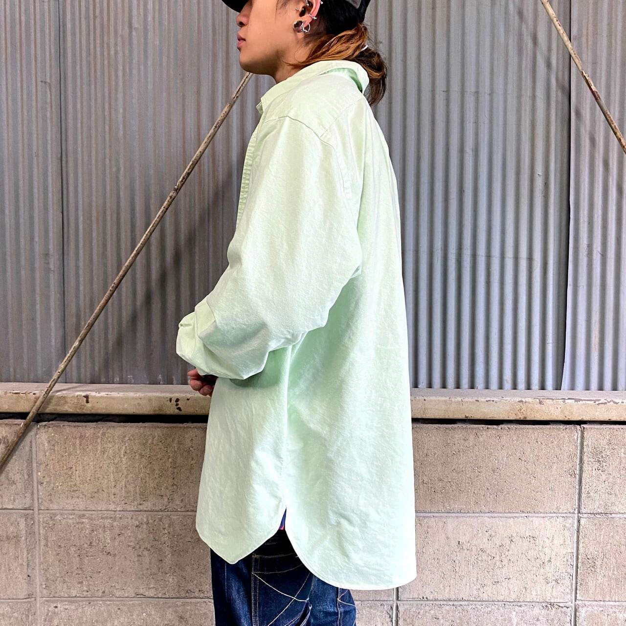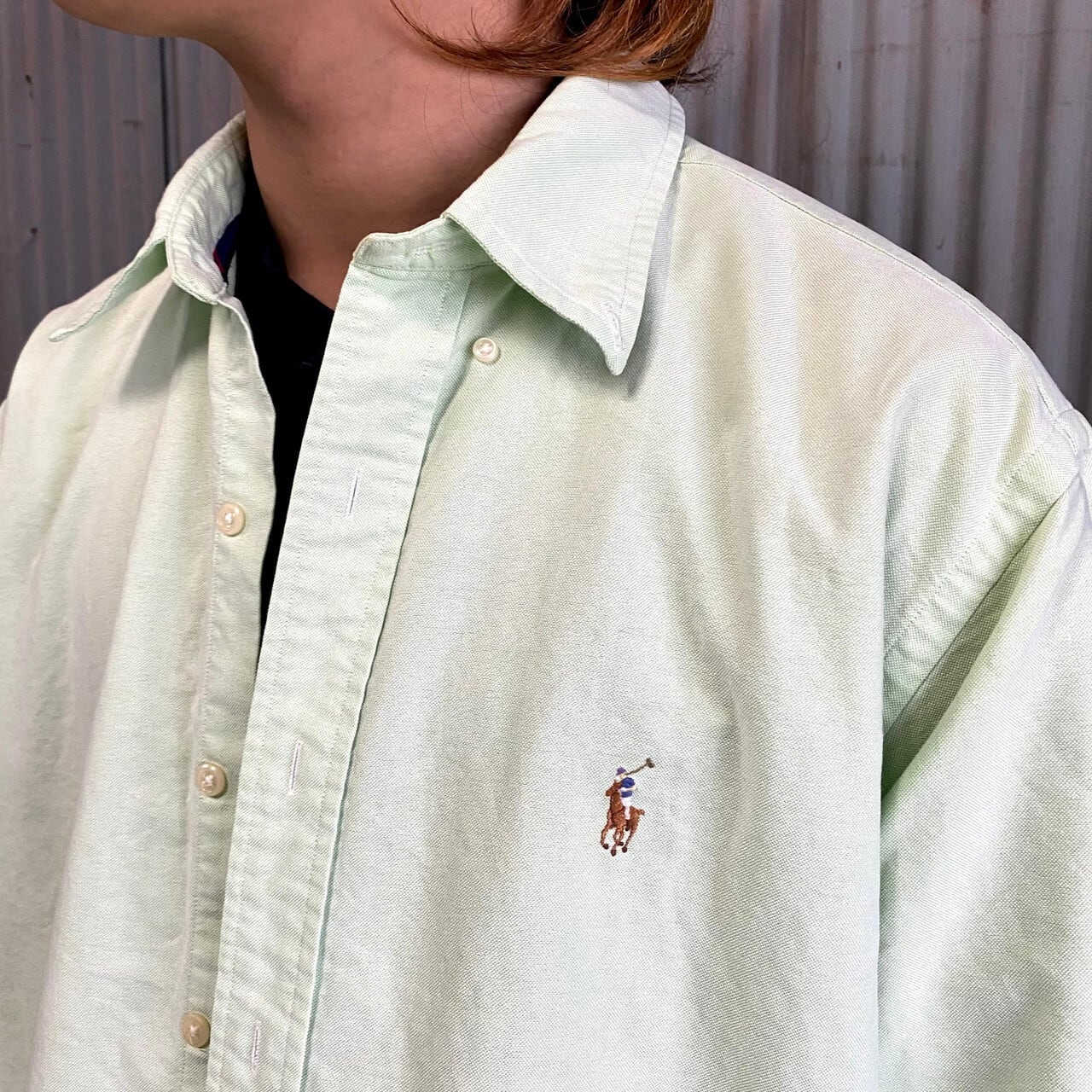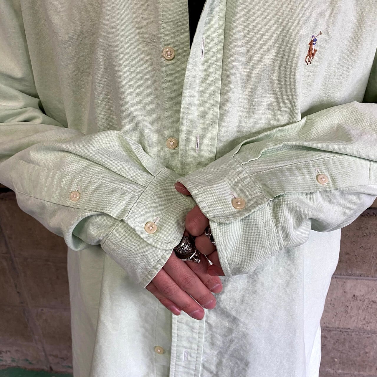レアカラー Ralph Lauren ラルフローレン ミントグリーン 長袖 ボタンダウンシャツ メンズXL 古着 黄緑色 マチ付き ペールトーン パステルカラー 淡色【長袖シャツ】