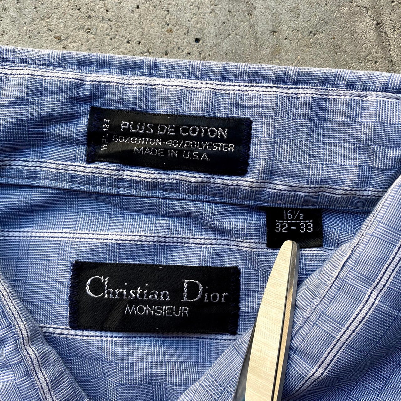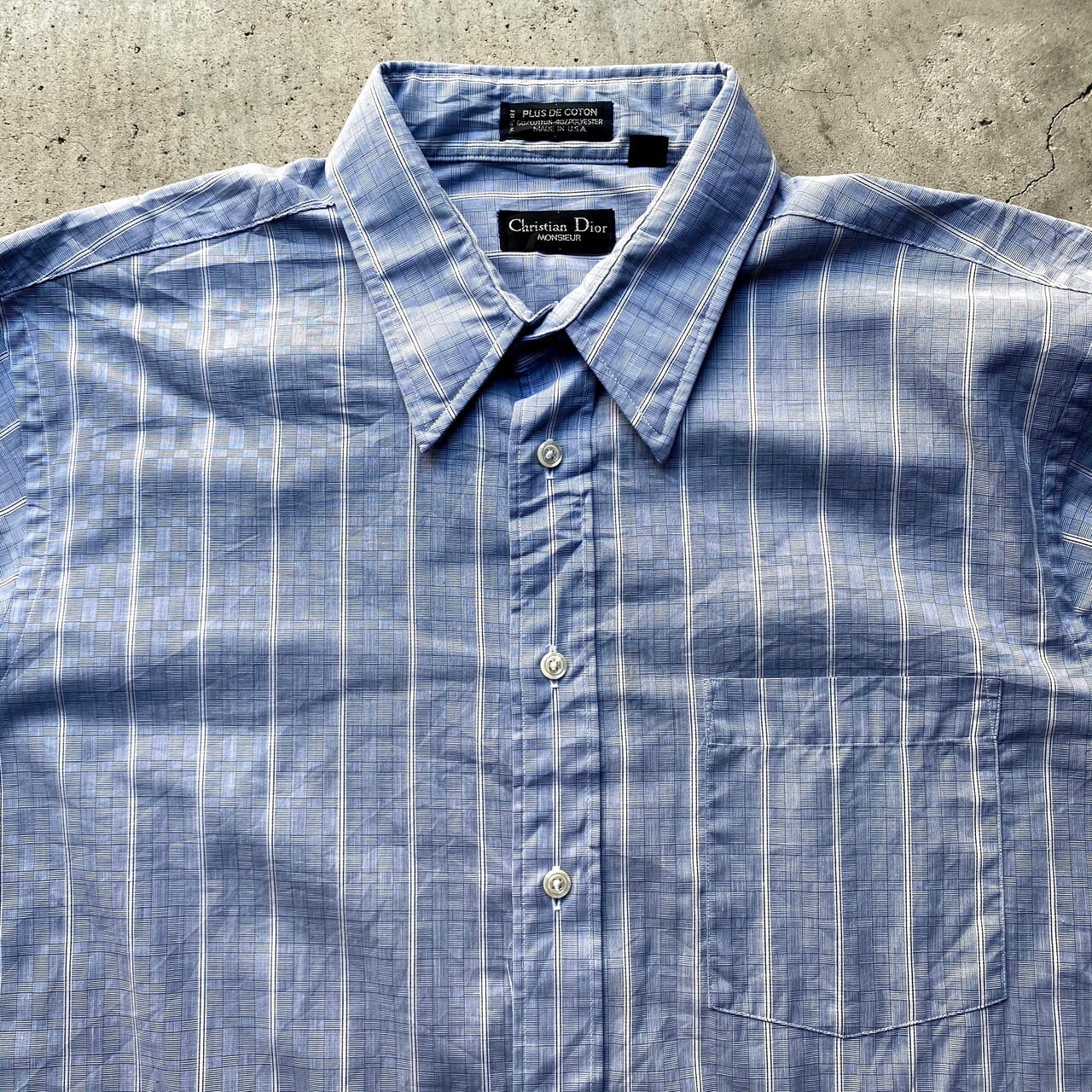 ■80~90年代 USA製 Christian Dior クリスチャンディオール ストライプ×チェック柄 長袖シャツ メンズL-XL相当 古着 80s 90s ビンテージ ヴィンテージ ブルー×ホワイト 青色 白 【長袖シャツ】
