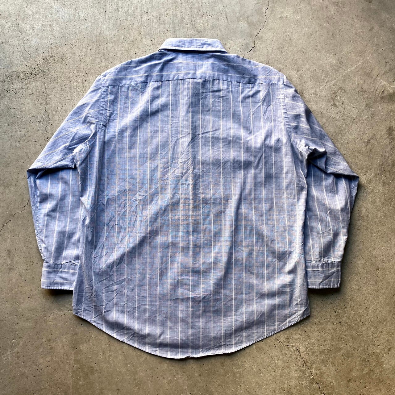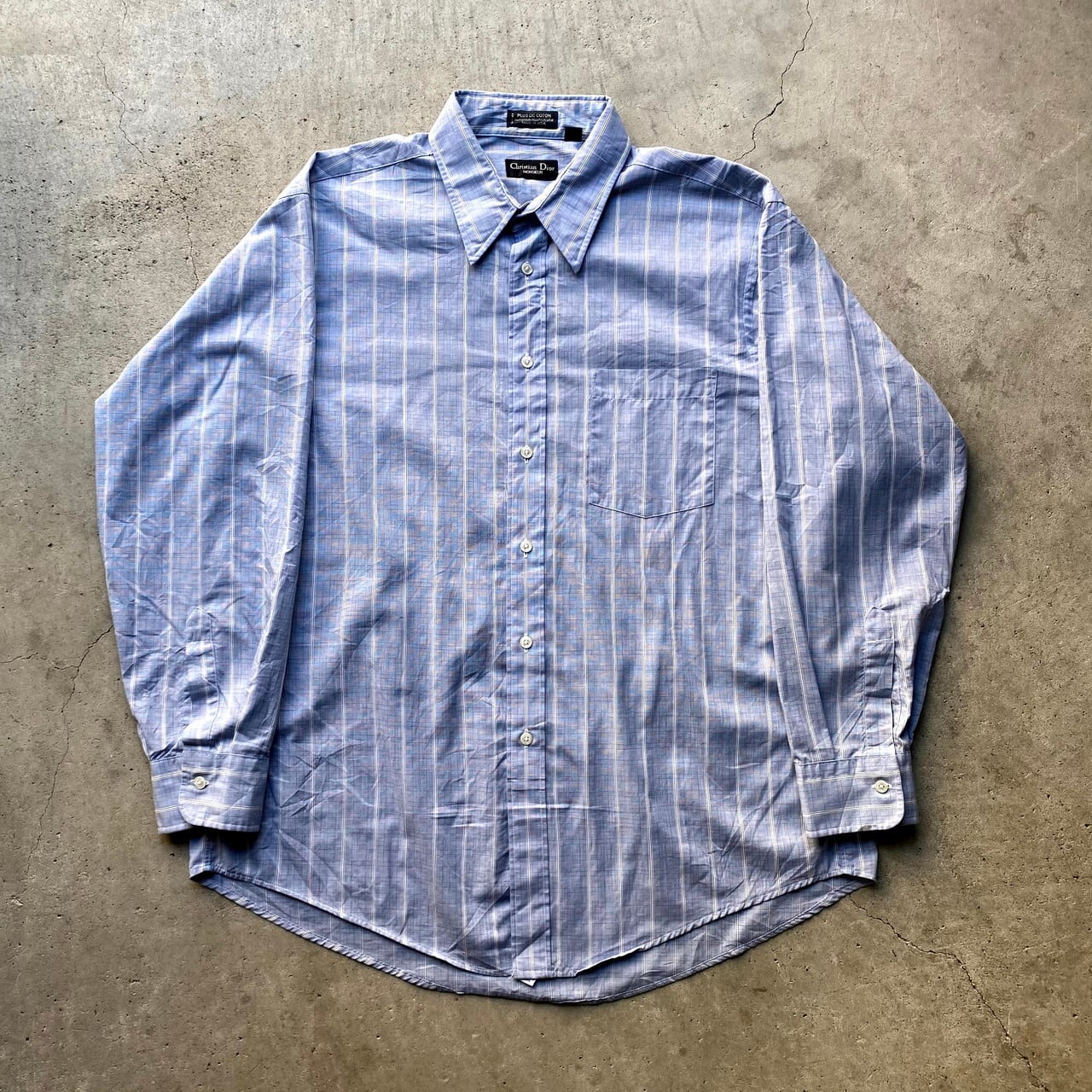 80〜90年代 USA製 Christian Dior クリスチャンディオール ストライプ×チェック柄 長袖シャツ メンズL-XL相当 古着 80s 90s ビンテージ ヴィンテージ ブルー×ホワイト 青色 白 【長袖シャツ】