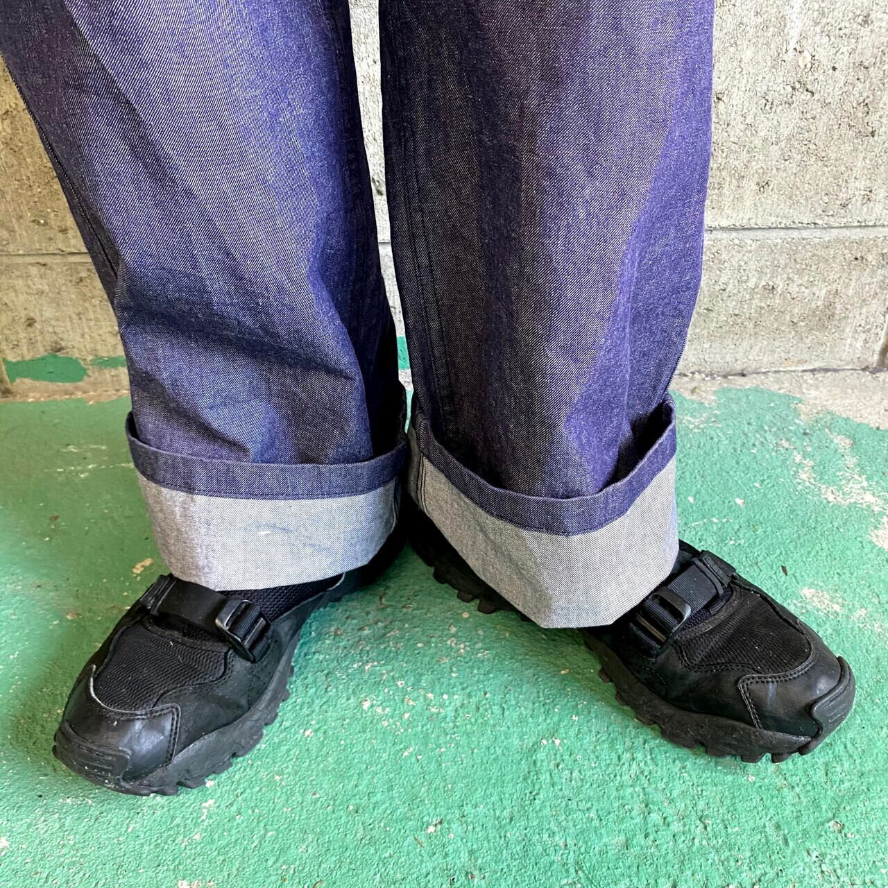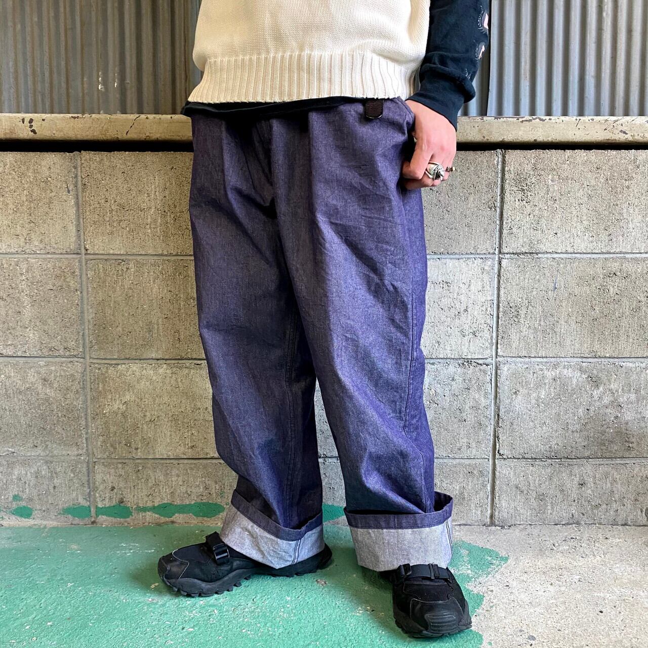 ■タック入り デニムトラウザー ユーロワークパンツ メンズW37 古着