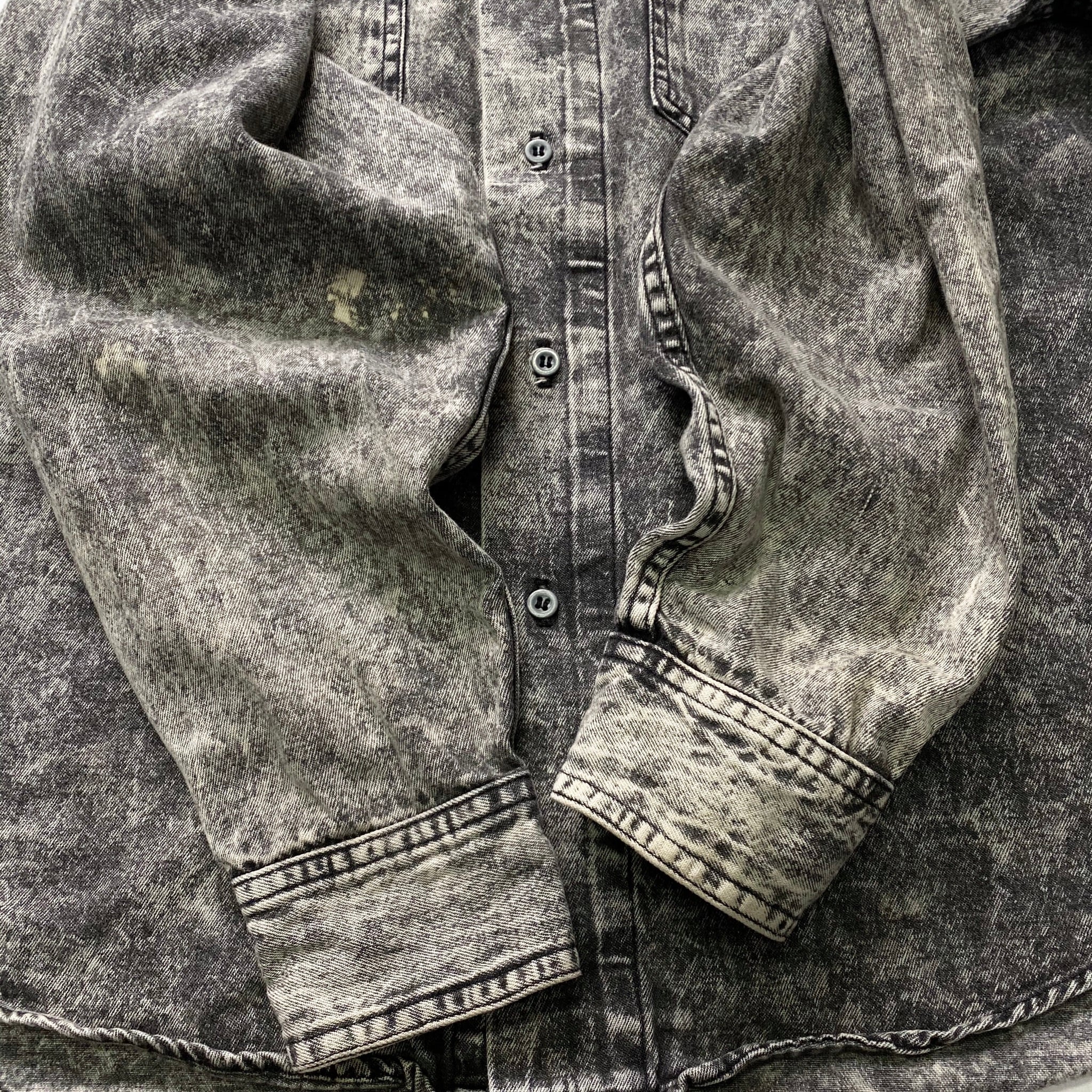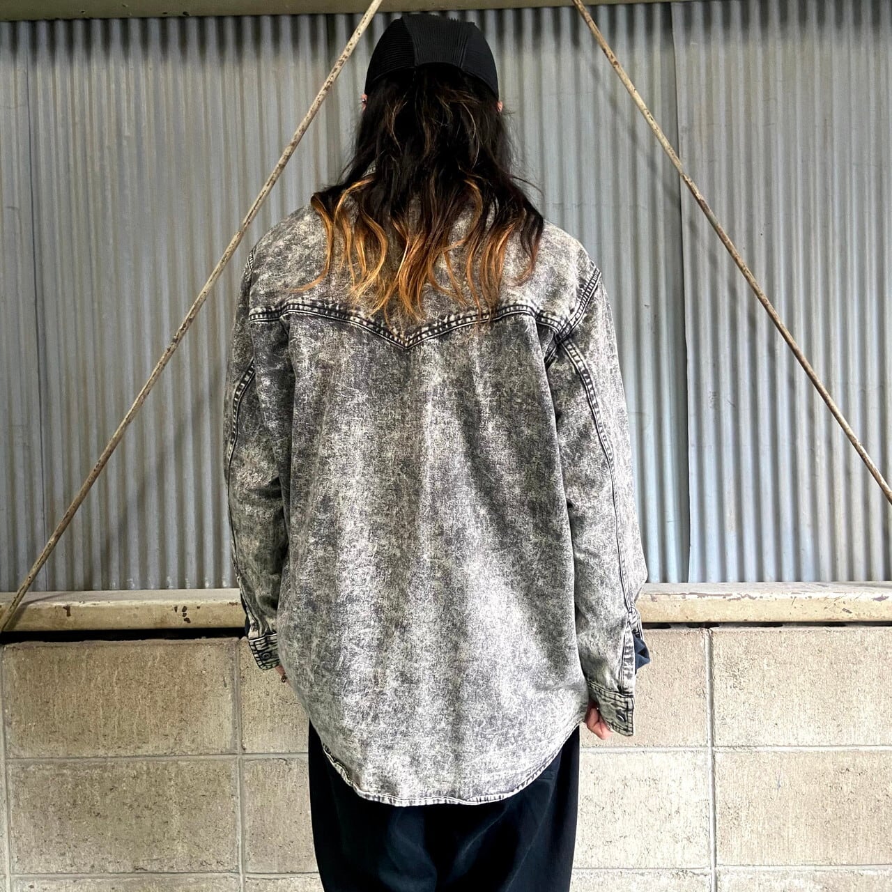 90年代 USA製 Calvin klein Sport カルバンクライン 長袖 ケミカルウォッシュ ブラックデニムシャツ メンズM 古着 90S ビンテージ ヴィンテージ 黒【長袖シャツ】【AL20】