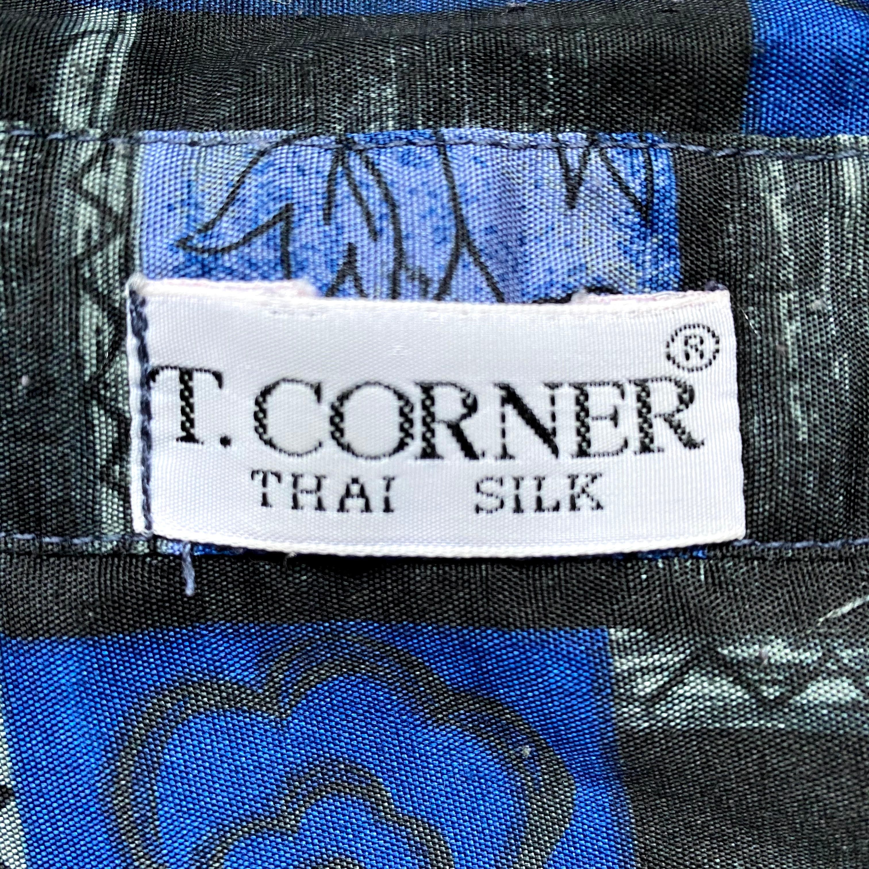 ■T.CORNER ユーロブランド 総柄シルクシャツ メンズXL相当 古着 【長袖シャツ】