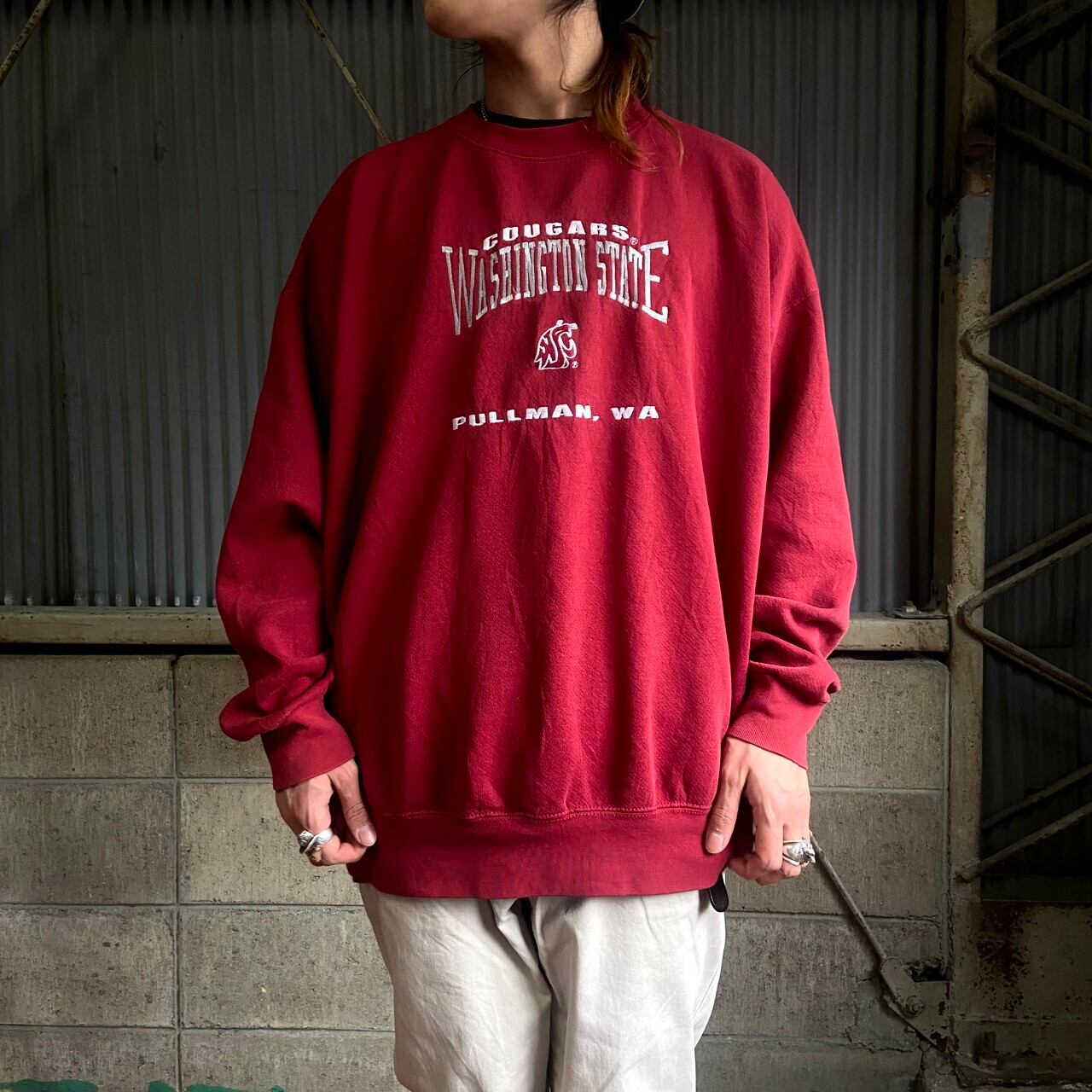 ビッグサイズ 90年代 USA製 Lee SPORT リースポーツ ワシントンステイト・クーガーズ カレッジチームロゴプリント スウェット メンズXXL 古着 WASHINGTON STATE COUGERS 90s ヴィンテージ ビンテージ プルオーバー トレーナー ワインレッド えんじ 大きいサイズ【トレーナー】【AL20】