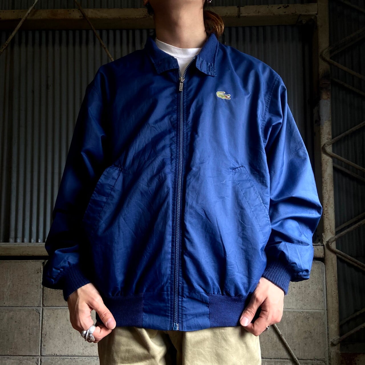 ■70年代 フランス製 LACOSTE フレンチラコステ ポリエステル スイングトップ メンズXL相当 古着 ハリントンジャケット ワンポイントロゴ 70s ヴィンテージ ビンテージ ベンチレーション付き ネイビー 紺色 【ブルゾン・ジャケット】