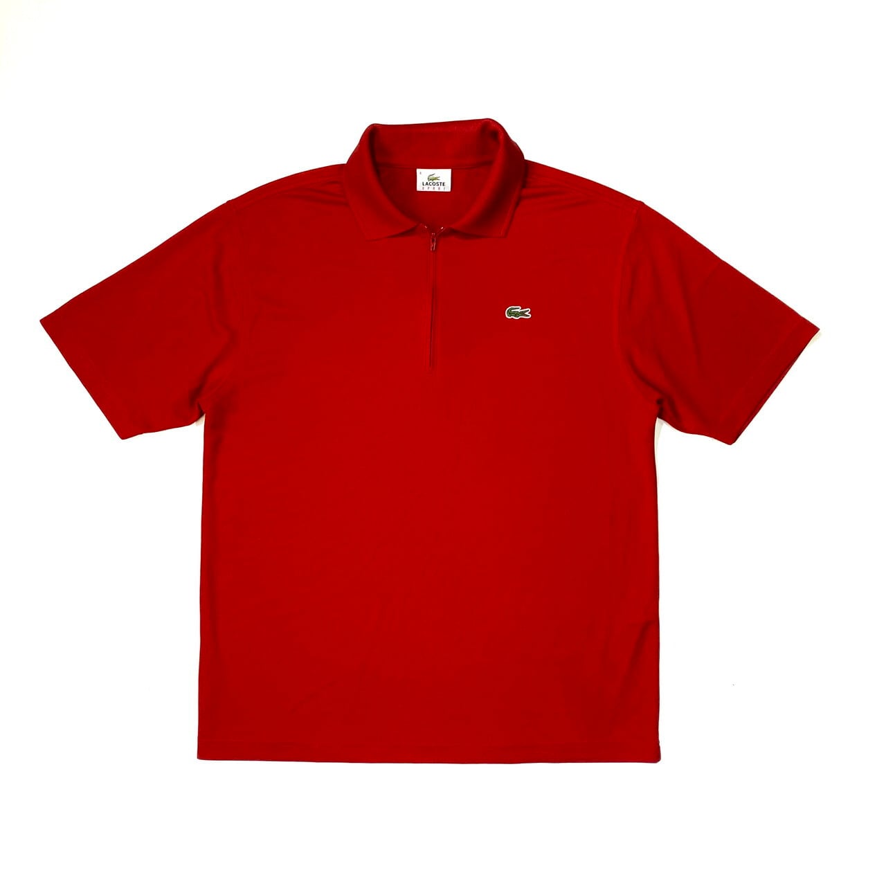 90年代 LACOSTE ラコステ ハーフジップ ポロシャツ メンズM相当 レッド 赤 古着【ポロシャツ】【SA21075】