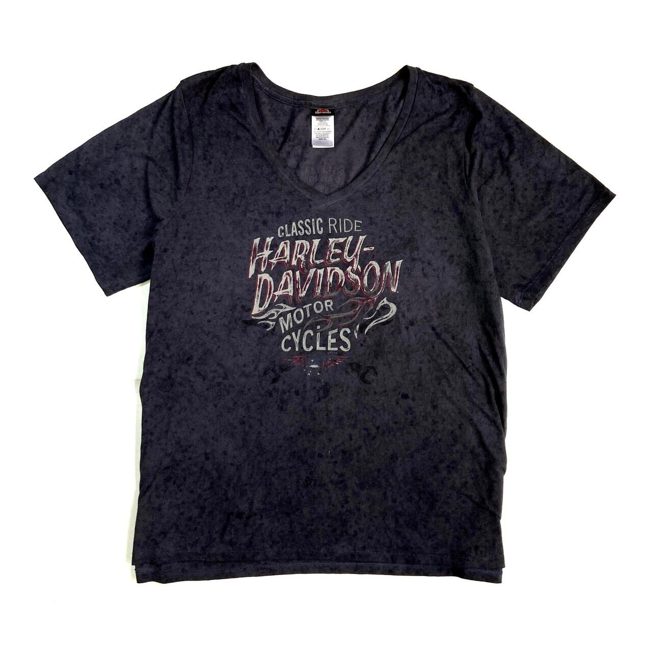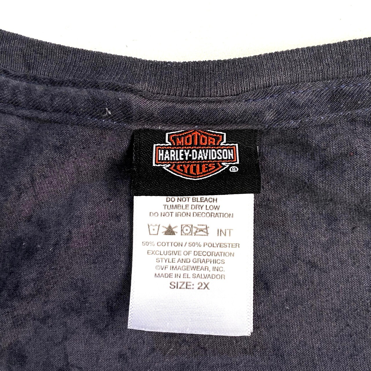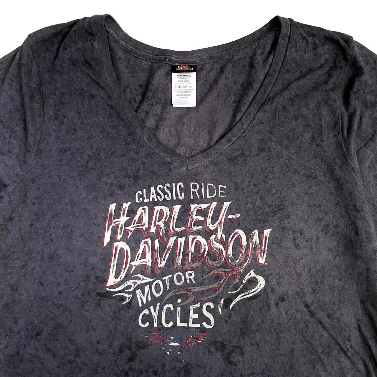 ■ビッグサイズ Harley-Davidson ハーレーダビッドソン フロントプリント Vネック Tシャツ メンズ2XL 古着 モーターサイクル バイクTシャツ バックロゴ グレー 灰色【Tシャツ】
