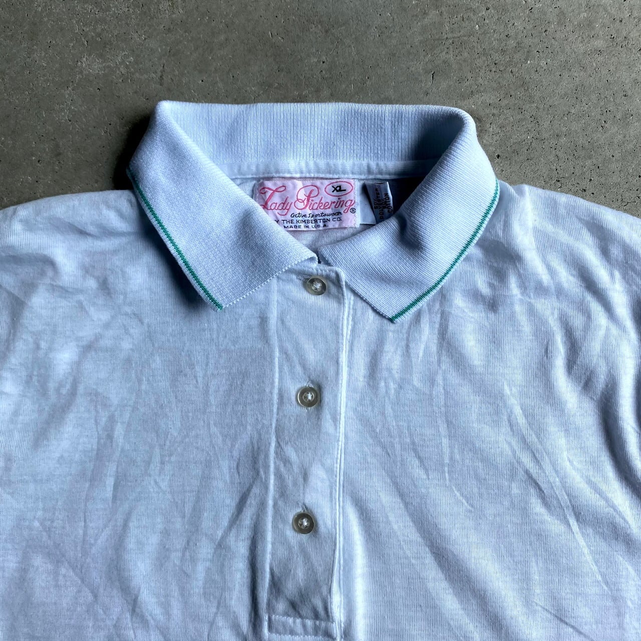 ■80年代 USA製 Lady Pickering ボーダー柄 ポロシャツ レディースXL 古着 80s ビンテージ ヴィンテージ ホワイト×グリーン 白 緑色【ポロシャツ】