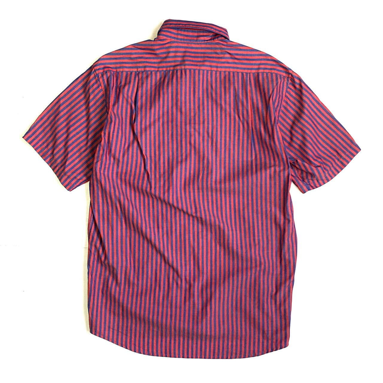 LACOSTE ラコステ ストライプ 半袖ボタンダウンシャツ B.Dシャツ メンズM相当 古着 レッド×ブルー 赤色×青色【半袖シャツ】【SA2204】
