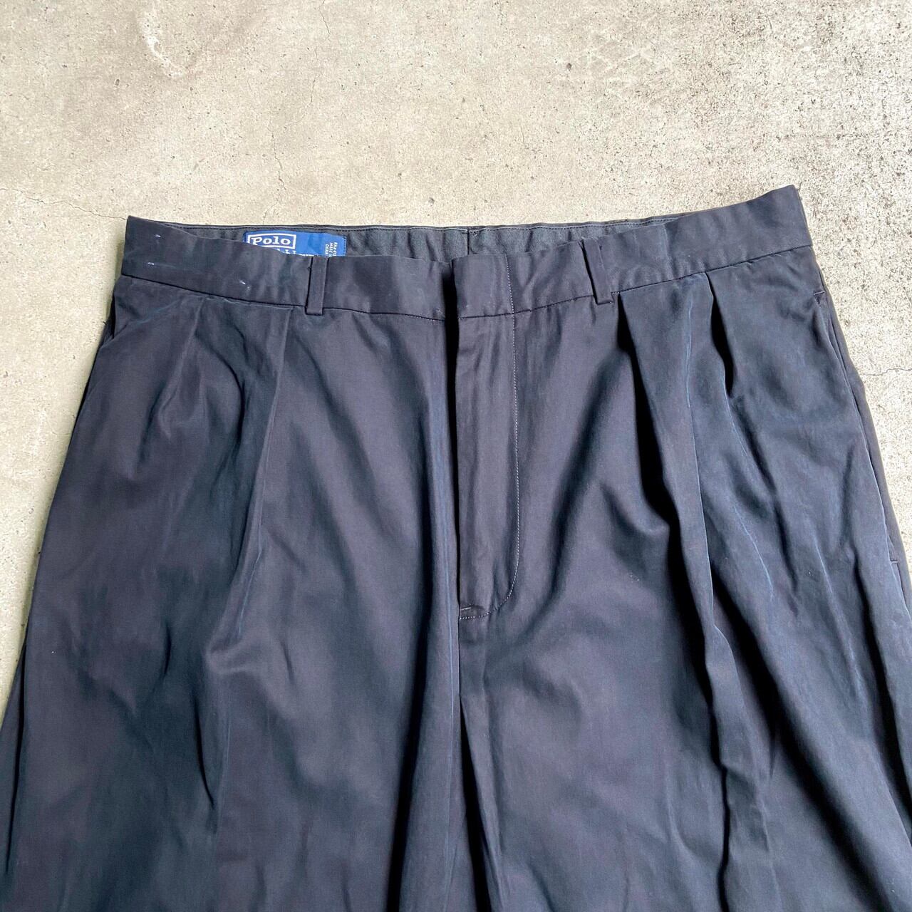 Polo by Ralph Lauren ポロバイラルフローレン シルク×コットン スラックスパンツ メンズW36 古着 ワイド ツータック ブラック 黒【ロングパンツ】【AL2110】