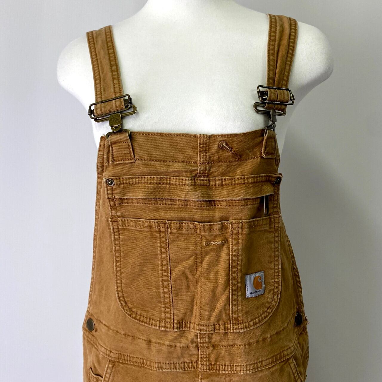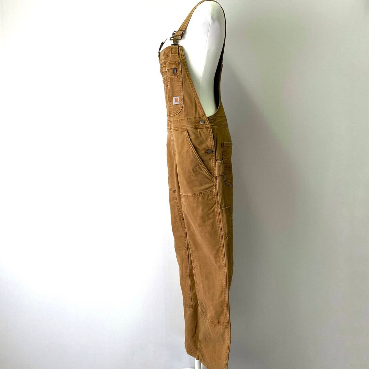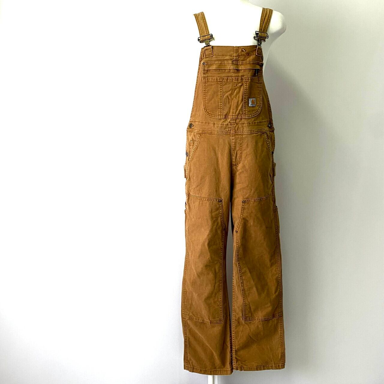 ■Carhartt カーハート ダック地 ダブルニー オーバーオール 古着 キャメルブラウン 茶色 【オーバーオール】