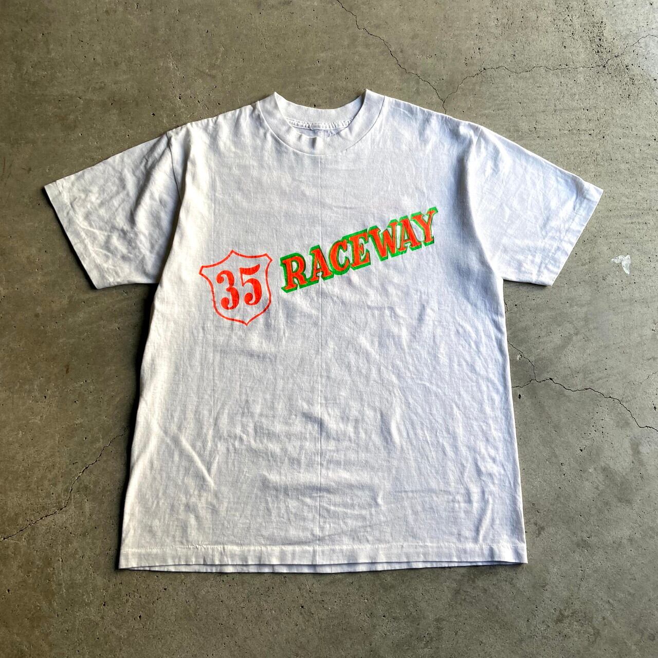 ■90年代 35 RACEWAY INC. レーシングTシャツ メンズM-L相当 古着 プリントTシャツ 両面プリント バックプリント 90s ビンテージ ヴィンテージ レーシングカー 車 ホワイト 白 【Tシャツ】【SA2106】