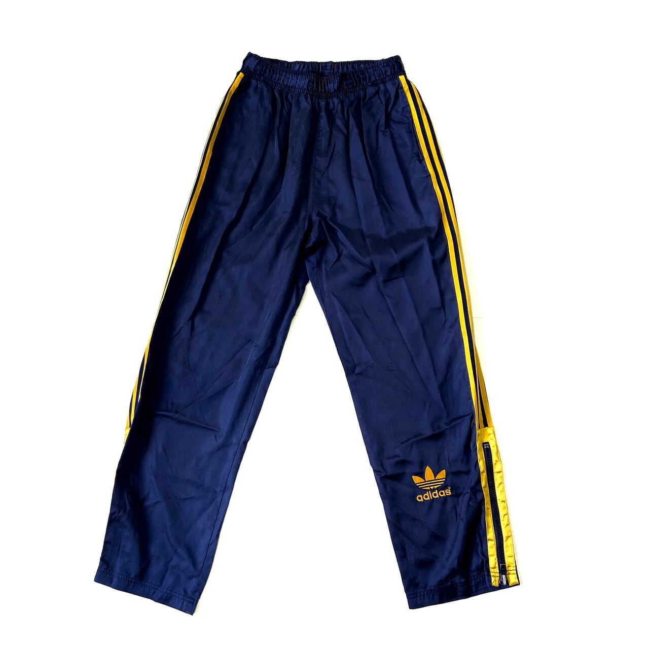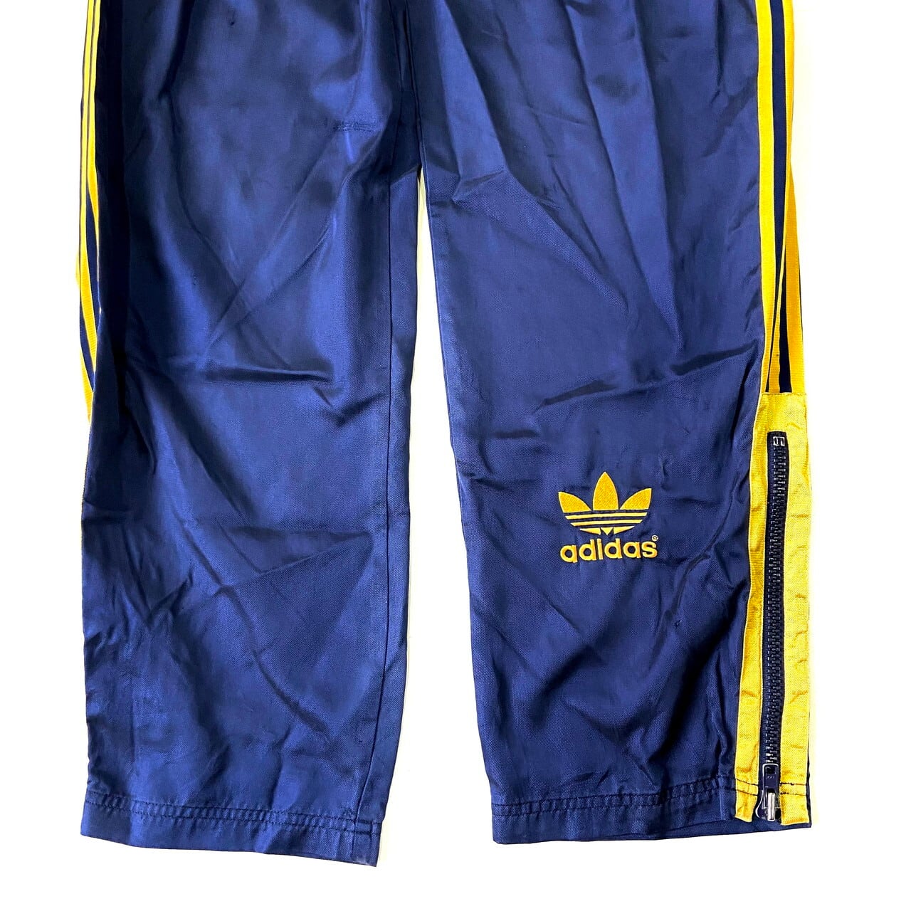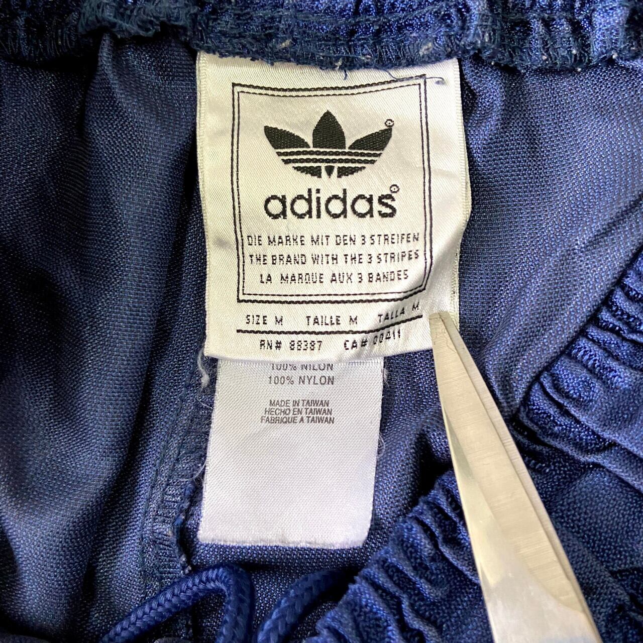 ■80年代 adidas アディダス ナイロンパンツ ジャージ 刺繍ロゴ メンズM 古着 80S ビンテージ ヴィンテージ ネイビー 紺色【ロングパンツ】