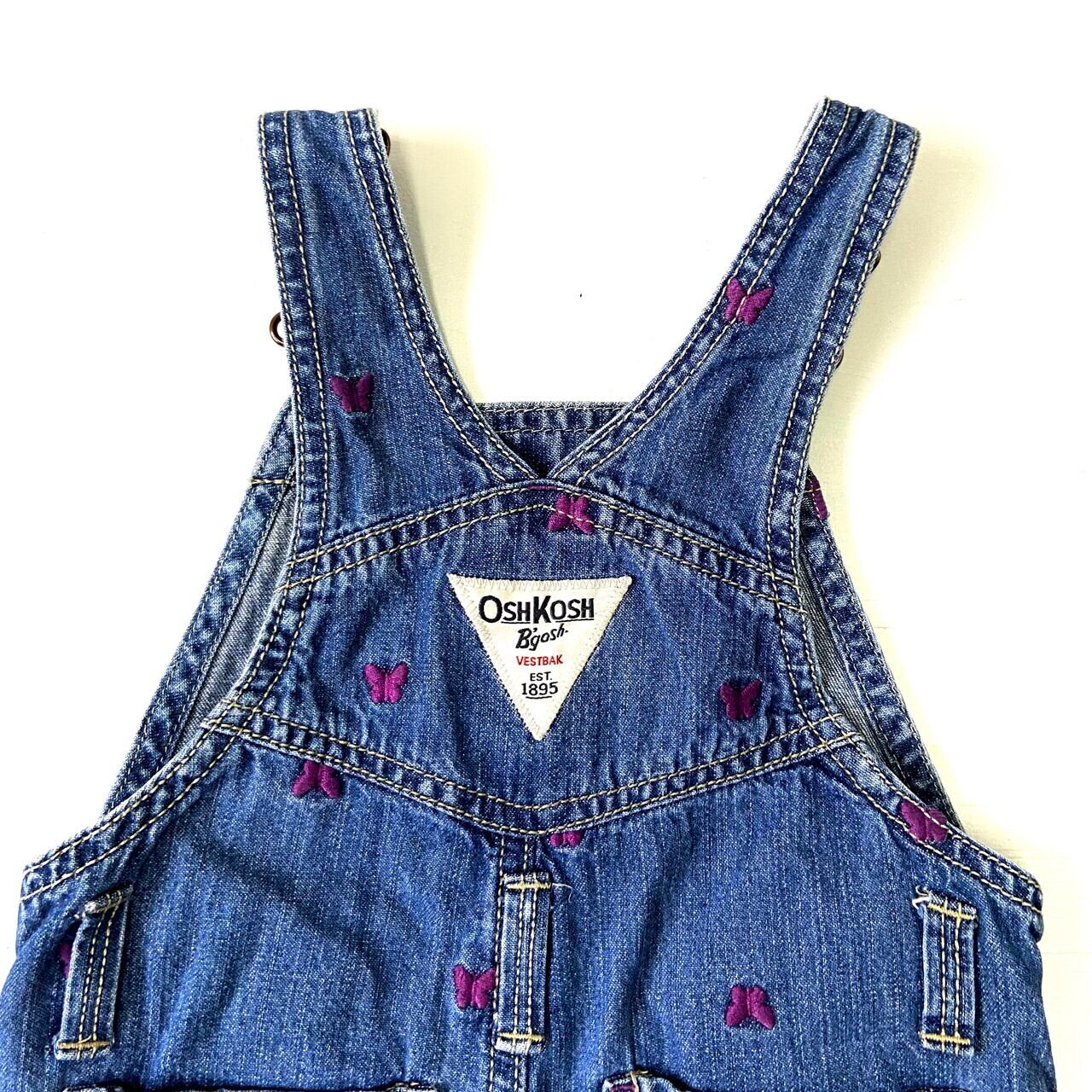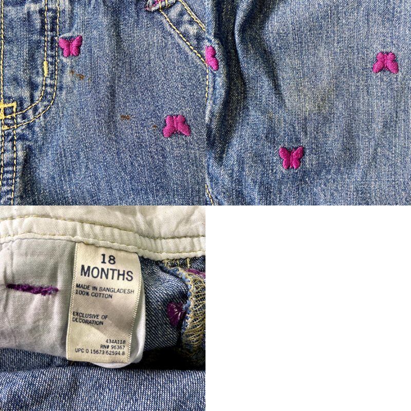 ■【kids】オシュコシュ 蝶々 刺繍 総柄 デニム オーバーオール キッズ18ヶ月 90cm相当 古着 OSHKOSH 子供服 キッズ 【オーバーオール】