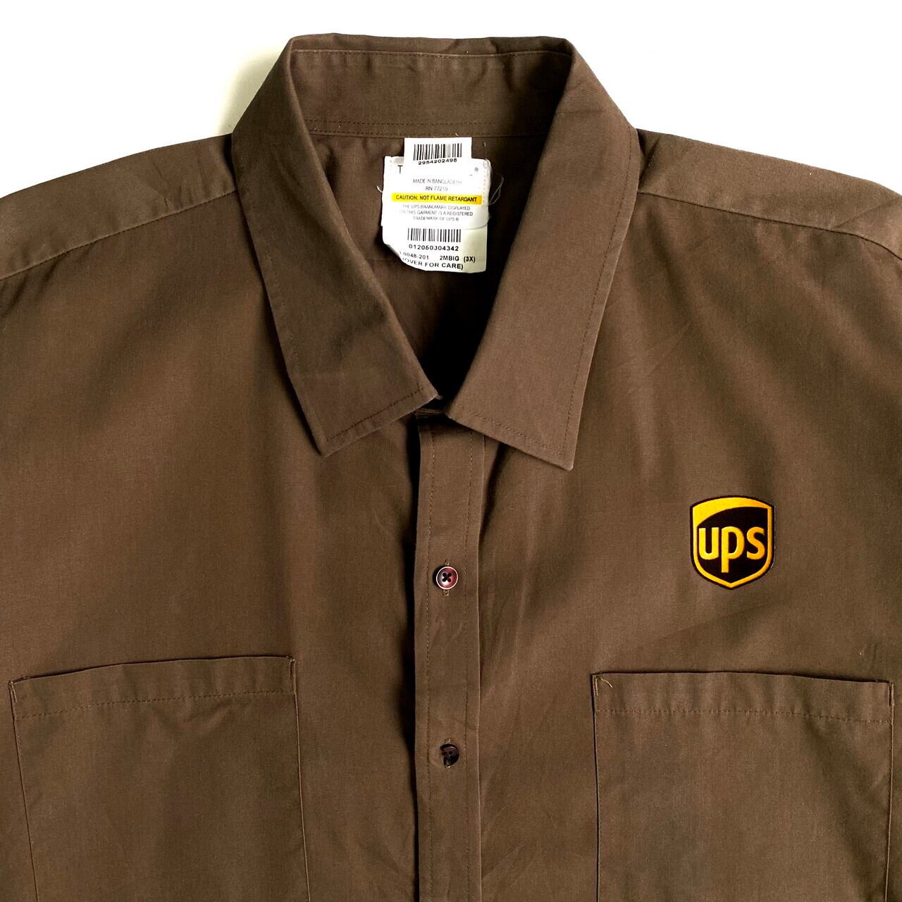 ■ビッグサイズ ups 企業ロゴ ワッペン 半袖ワークシャツ メンズ3XL 古着 TWINHILL オープンカラー ボックスシャツ ブラウン 茶色 大きいサイズ【半袖シャツ】