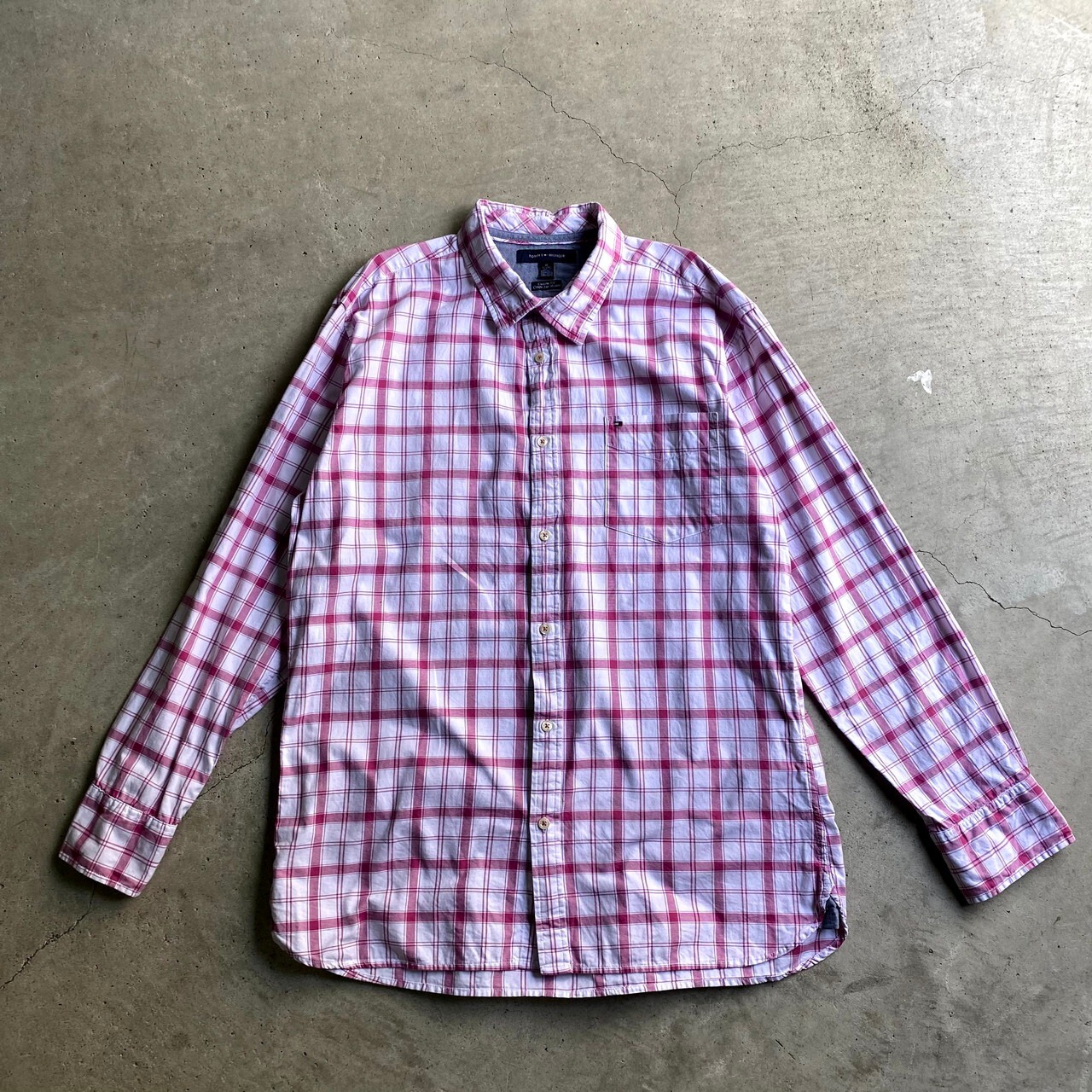 TOMMY HILFIGER トミーヒルフィガー 長袖 チェックシャツ メンズXL 古着 ピンク×ホワイト 白色【長袖シャツ】【CS2301-50】【3anniv】