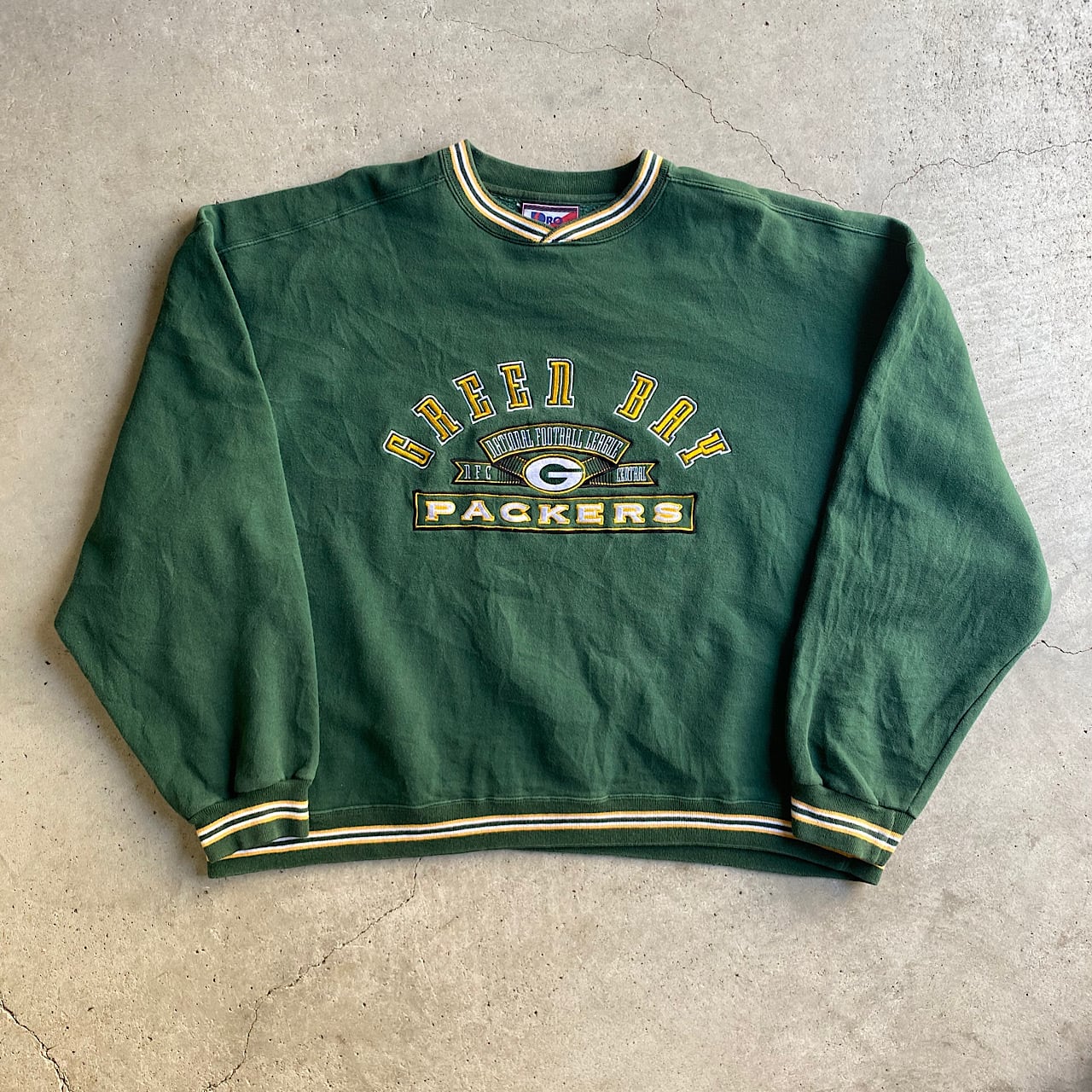 ■ビッグサイズ PRO PLATER NFL グリーンベイ・パッカーズ チームロゴ刺繍 スウェットシャツ メンズ2XL相当 古着 NFL GREEN BAY PACKERS トレーナー グリーン 緑色 大きいサイズ【スウェット】