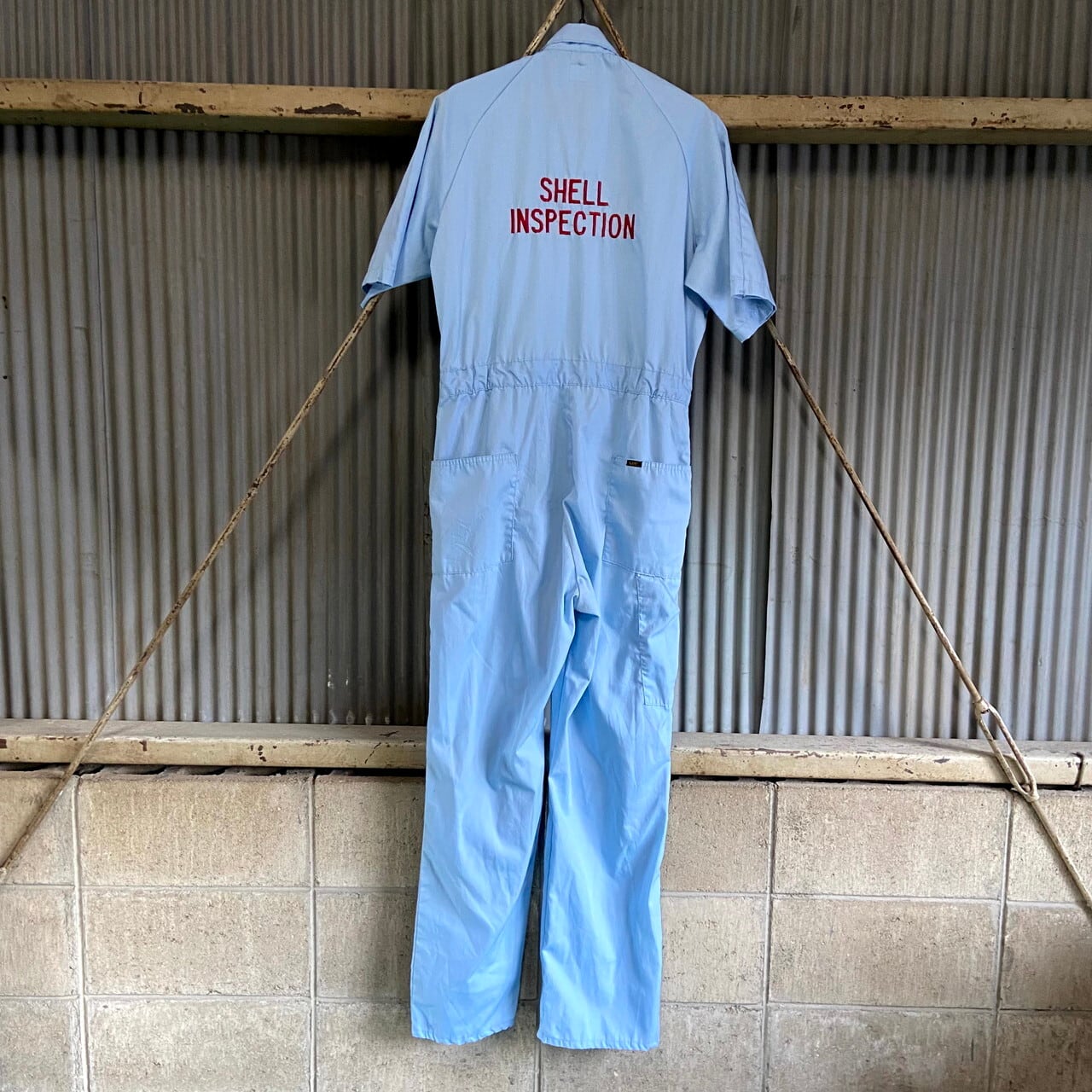 80年代 USA製 Lee リー ロングL UNION ALLS 刺繍 企業ロゴ 半袖 オールインワン メンズXL相当 古着 80s ビンテージ ヴィンテージ つなぎ TALONジップ 水色 ライトブルー 【オーバーオール】【AL2110】