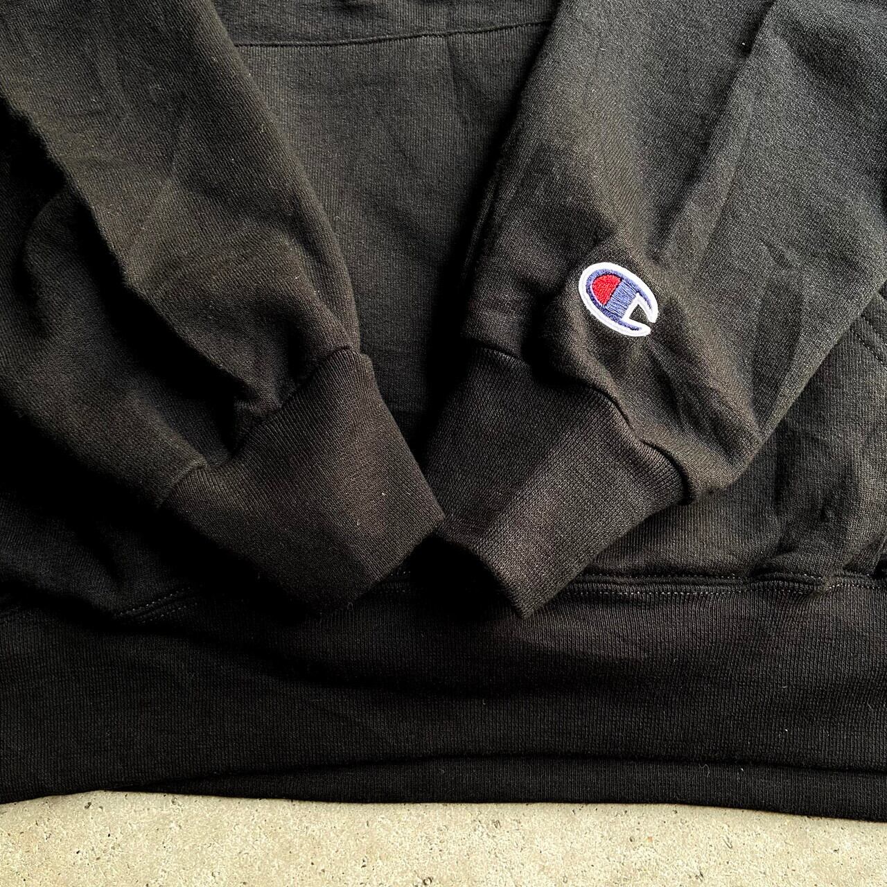 ■Champion チャンピオン Clyde's ショップロゴ プリント プルオーバーパーカー メンズL 古着 スウェットパーカー 胸ロゴ バックプリント ブラック 黒 【パーカー】