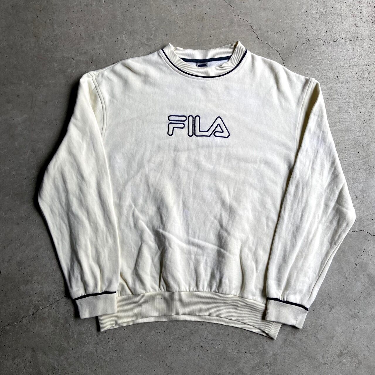 FILA フィラ フロントロゴ刺繍 スウェット メンズM 古着 トレーナー オフホワイト 生成り【スウェット】【P2000】【CS2312-AL1】