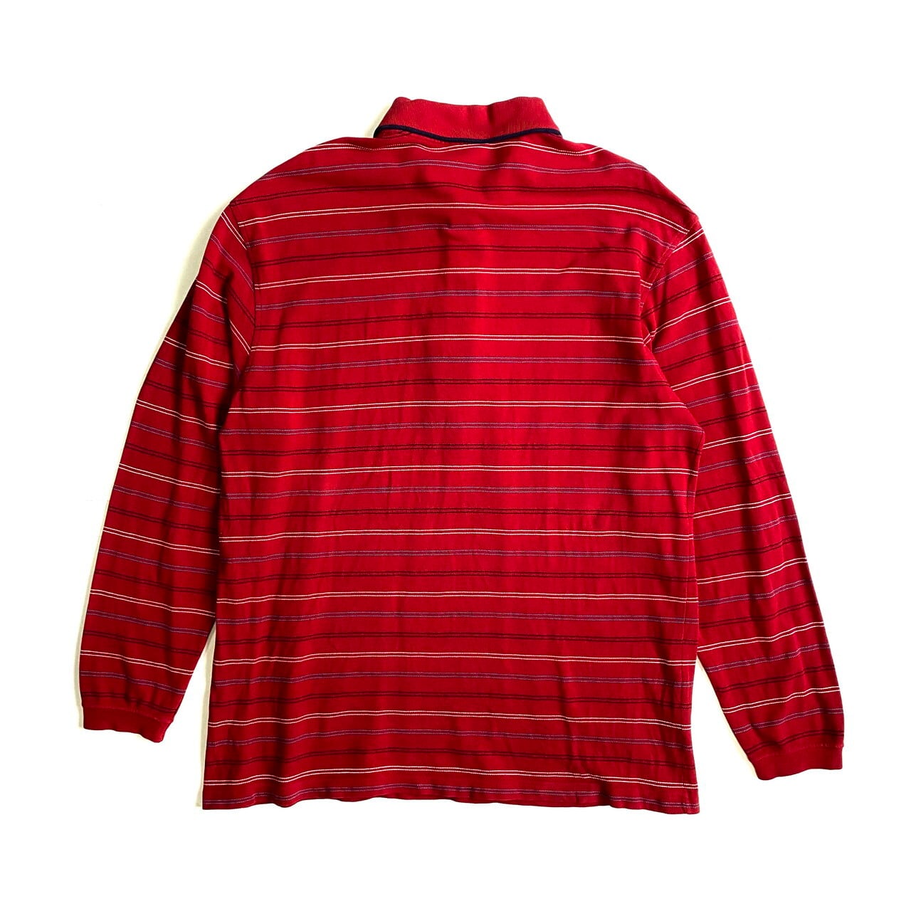 LACOSTE ラコステ 鹿の子 ボーダー 長袖ポロシャツ メンズL相当 古着 レッド 赤色【ポロシャツ・ラガーシャツ】【SA2204】