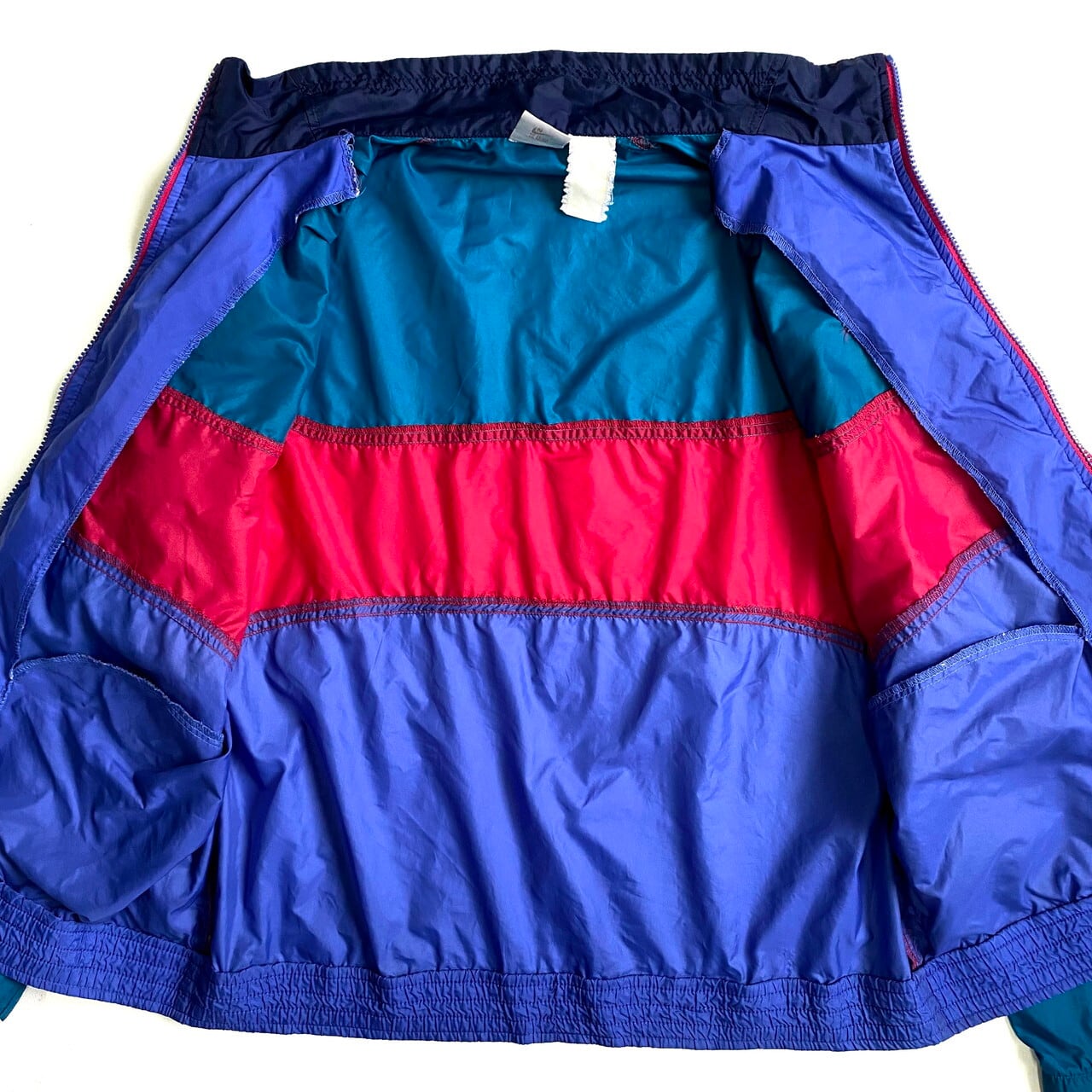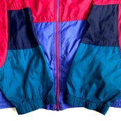 90年代 銀タグ NIKE ナイキ スモールスウォッシュ ロゴ刺繍 切り替えデザイン ナイロンジャケット メンズL相当 古着 90s ヴィンテージ ビンテージ ウインドブレーカー マルチカラー グリーン×ピンク×ブルーパープル 【ナイロンジャケット】
