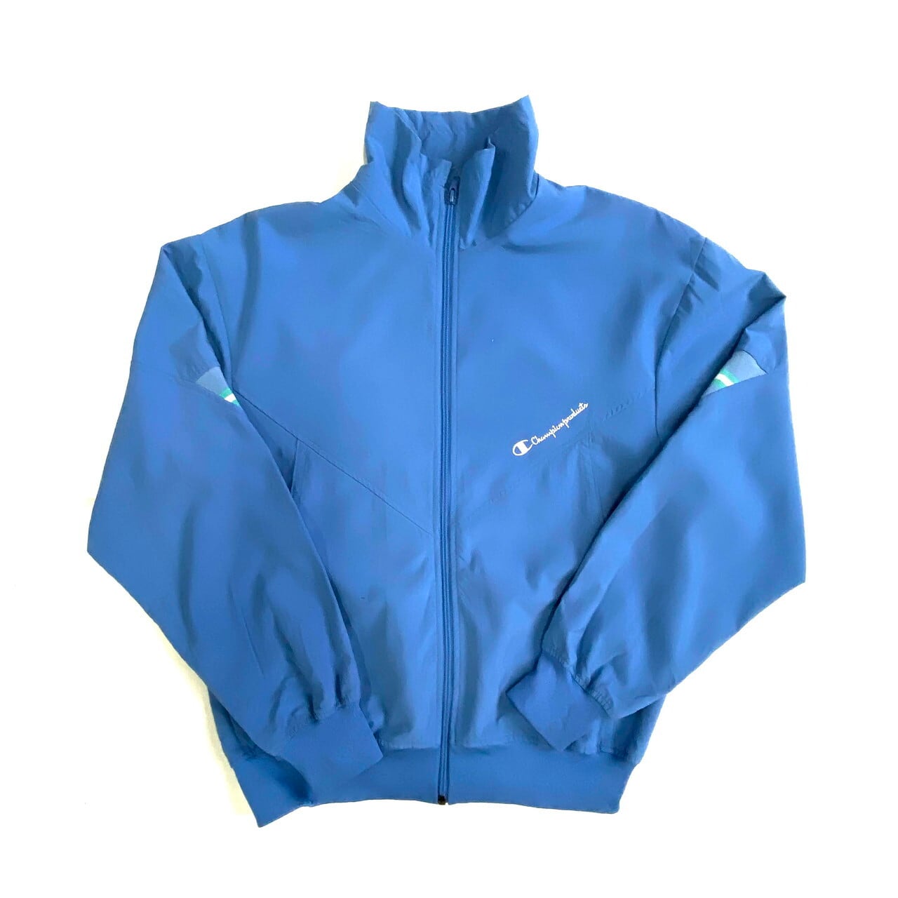 ■80年代 日本製 Champion チャンピオン ワンポイント刺繍 ロゴ ジャージ ヴィンテージ ビンテージ メンズL 古着 ライトブルー 水色【ジャージ・トラックジャケット】