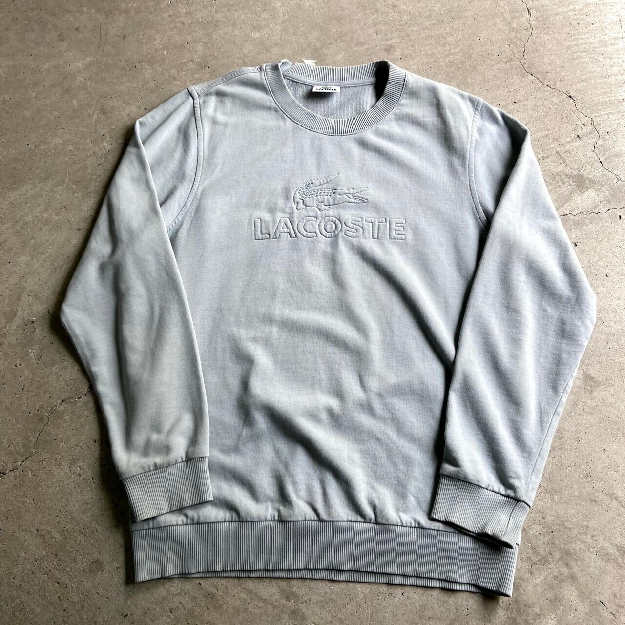 ■90年代 フレンチラコ ラコステ ビッグロゴ刺繍 スウェットシャツ メンズL相当 古着 90S ビンテージ ヴィンテージ LACOSTE トレーナー ライトブルー 水色【スウェット】