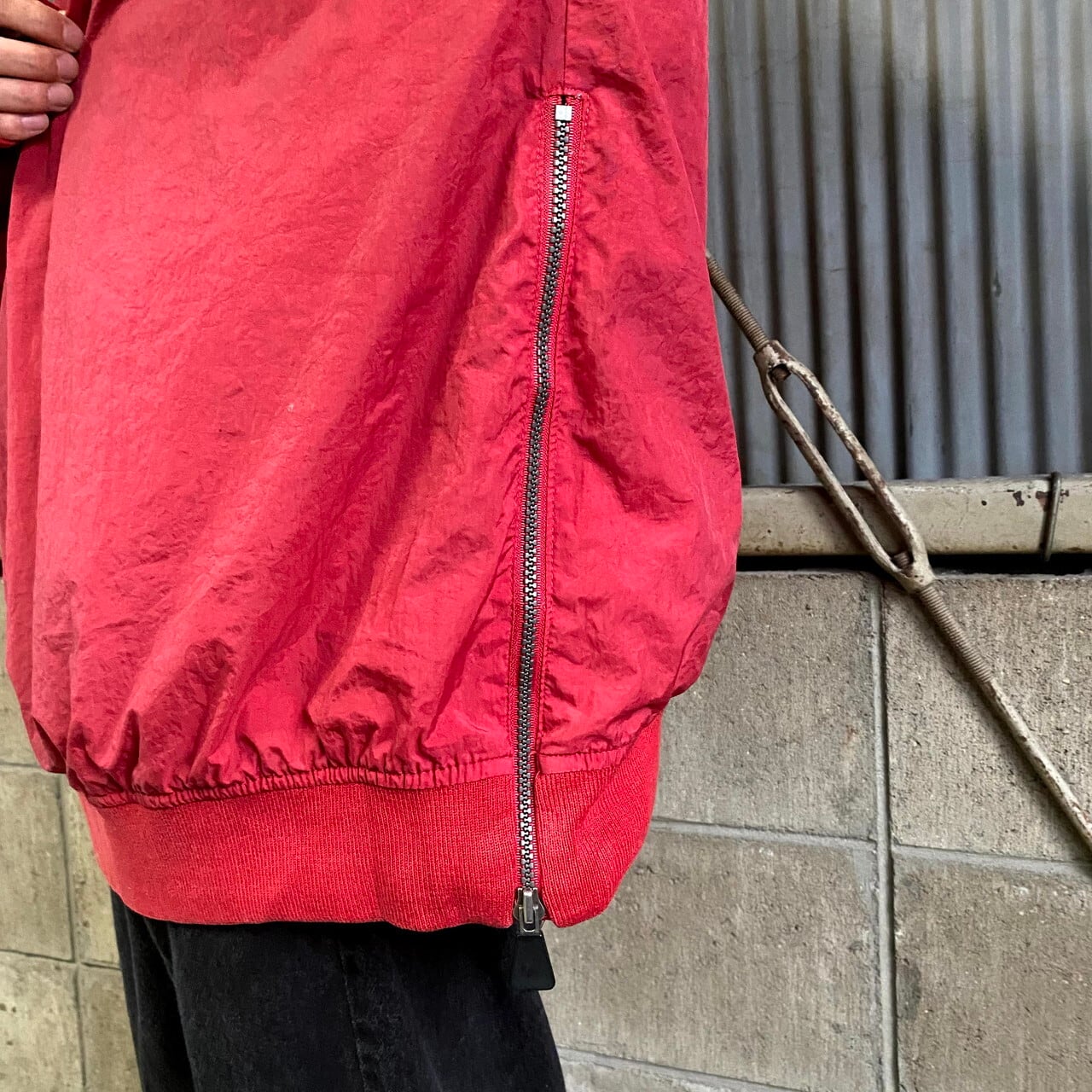 ■90年代 adidas アディダス ワンポイント フロントロゴ刺繍 ウォームアッププルオーバー メンズXL 古着 90S ビンテージ ヴィンテージ ナイロンジャケット ワインレッド ボルドー えんじ【ナイロンジャケット】
