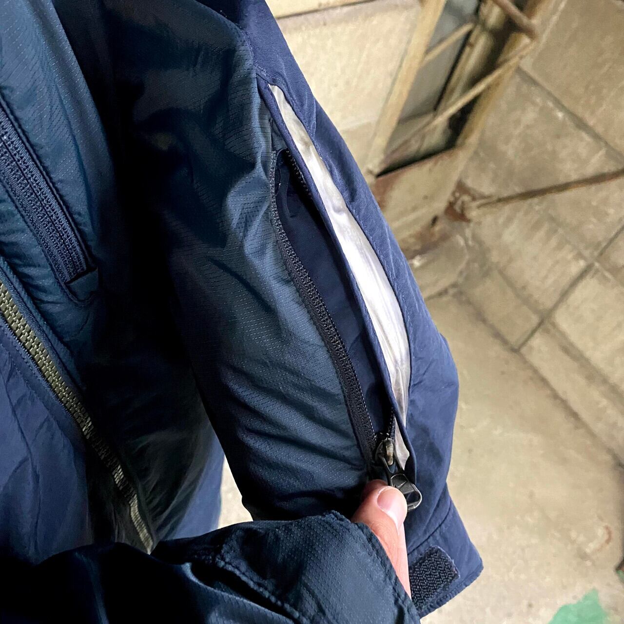 ■ビッグサイズ NIKE ナイキ スウォッシュロゴ刺繍 パフジャケット ナイロンジャケット メンズ2XL 古着 中綿入り ネイビー 紺色 大きいサイズ 【ナイロンジャケット】