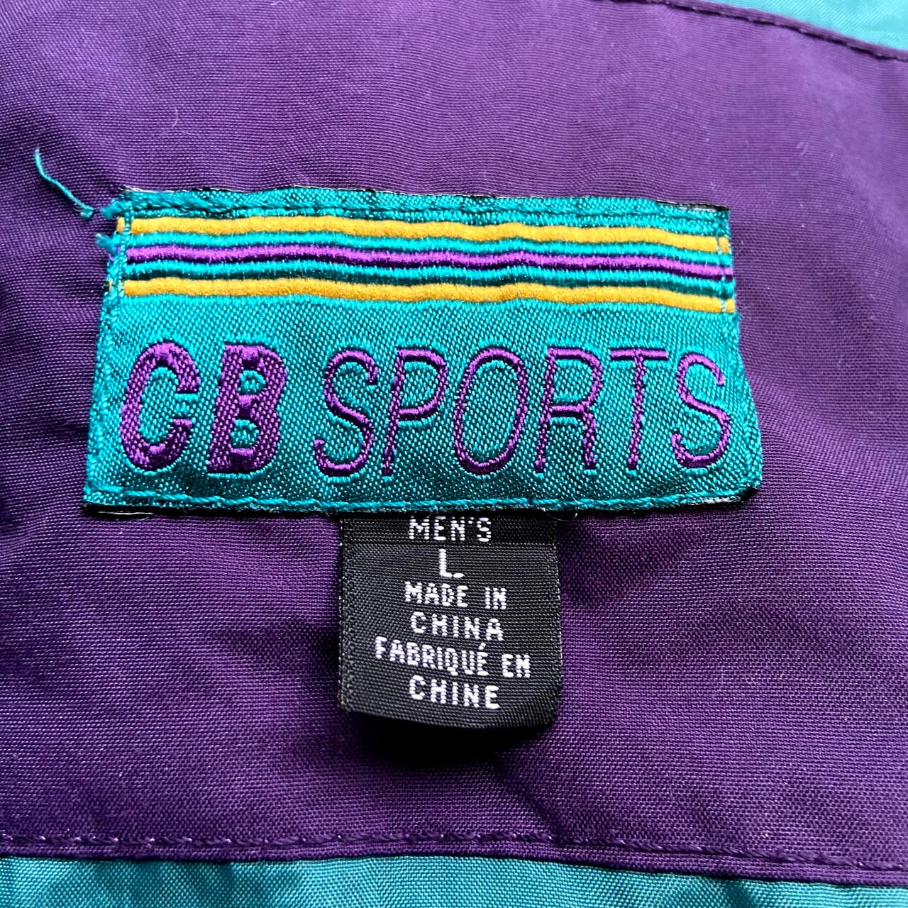 ■90年代 ビンテージ CB SPORTS フード収納型 ハイネック マウンテンジャケット メンズL 古着 90s ヴィンテージ ナイロンジャケット グリーン×パープル 緑×紫 ワンポイントロゴ【アウトドアジャケット】