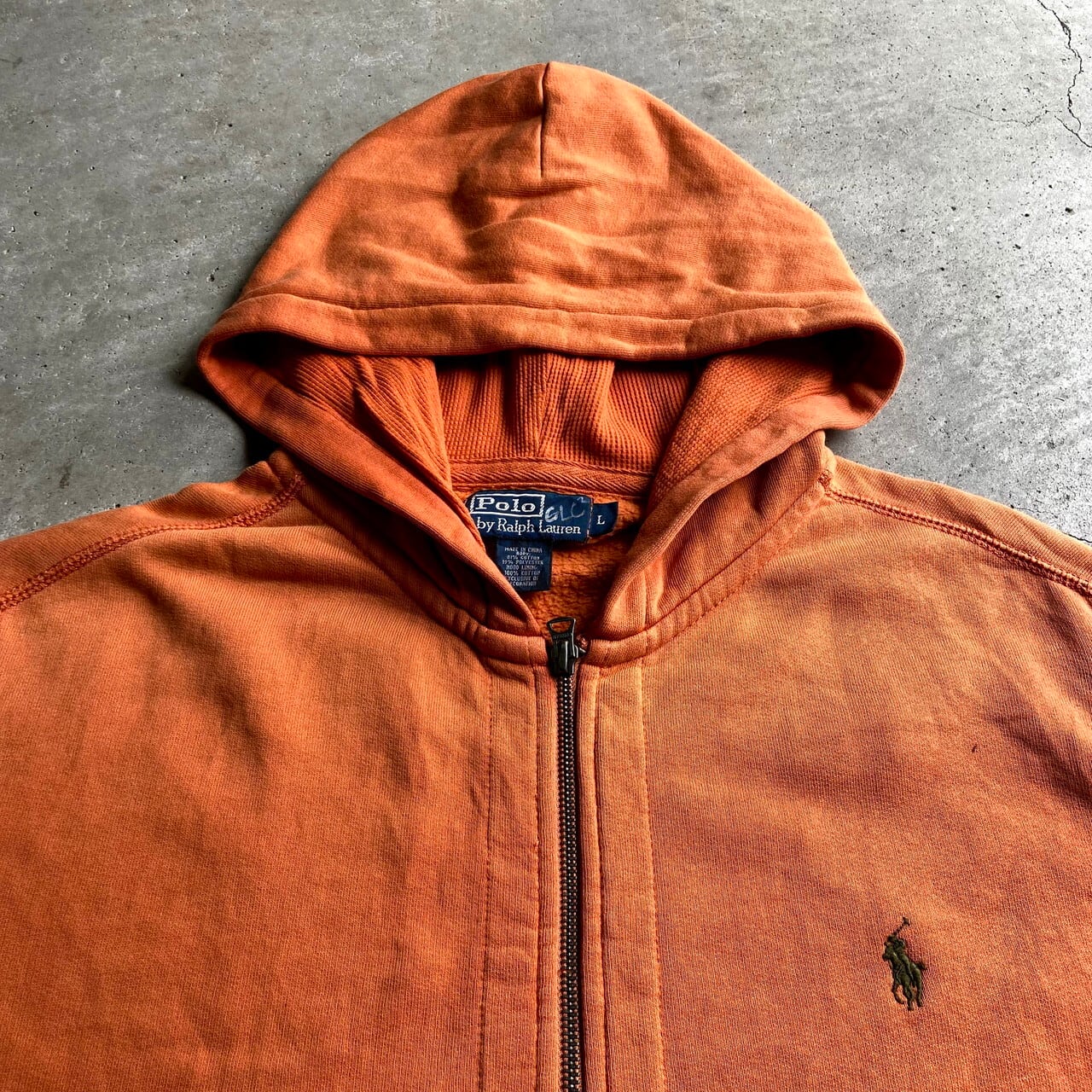 ■Polo by Ralph Lauren ラルフローレン ワンポイント ロゴ刺繍 フルジップ スウェットパーカー 無地 オレンジ メンズL 古着 【スウェット】