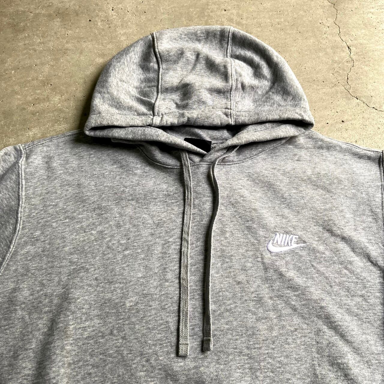 NIKE ナイキ スモールスウォッシュ ワンポイントロゴ刺繍 プルオーバーパーカー メンズL 古着 スウェットパーカー グレー【パーカー】
