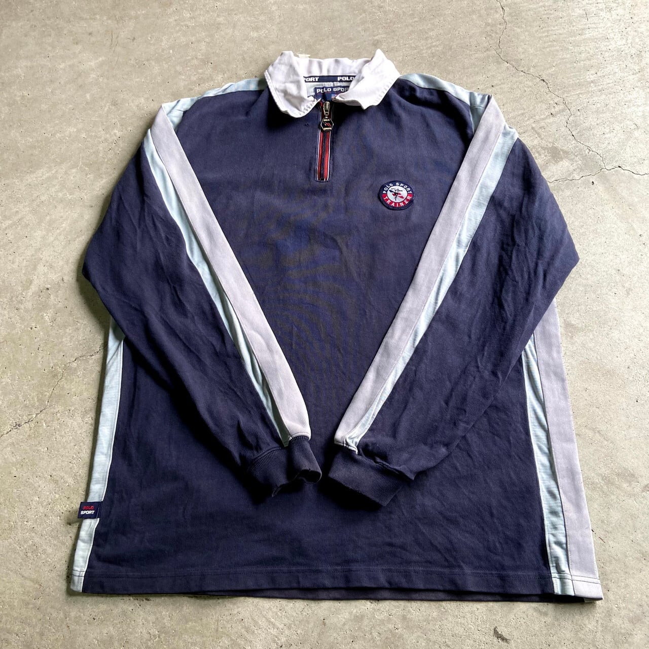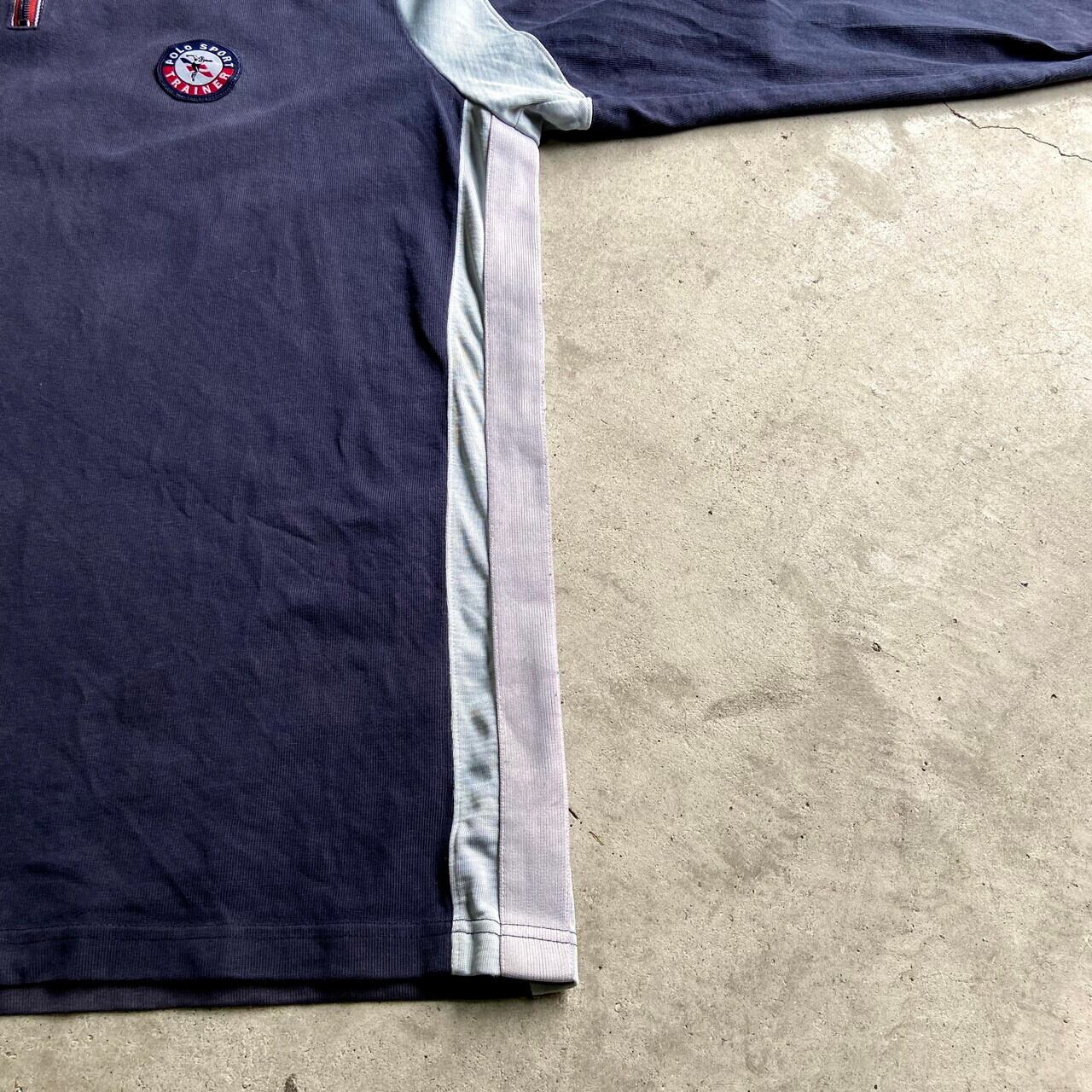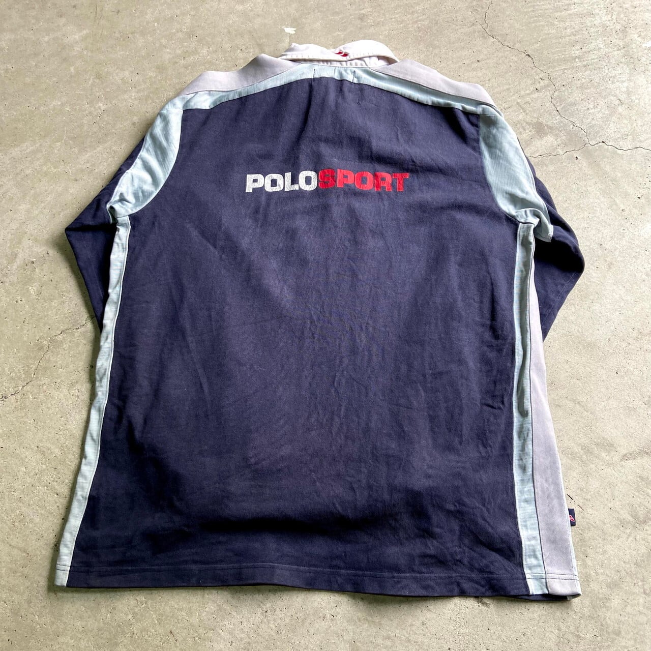 ■90年代 POLO SPORT TRAINER Ralph Lauren ポロスポーツ ラルフローレン ハーフジップ ラガーシャツ メンズXL相当 古着 90s ビンテージ ヴィンテージ ワッペン バックプリント ポロシャツ ネイビー 紺色【ポロシャツ・ラガーシャツ】