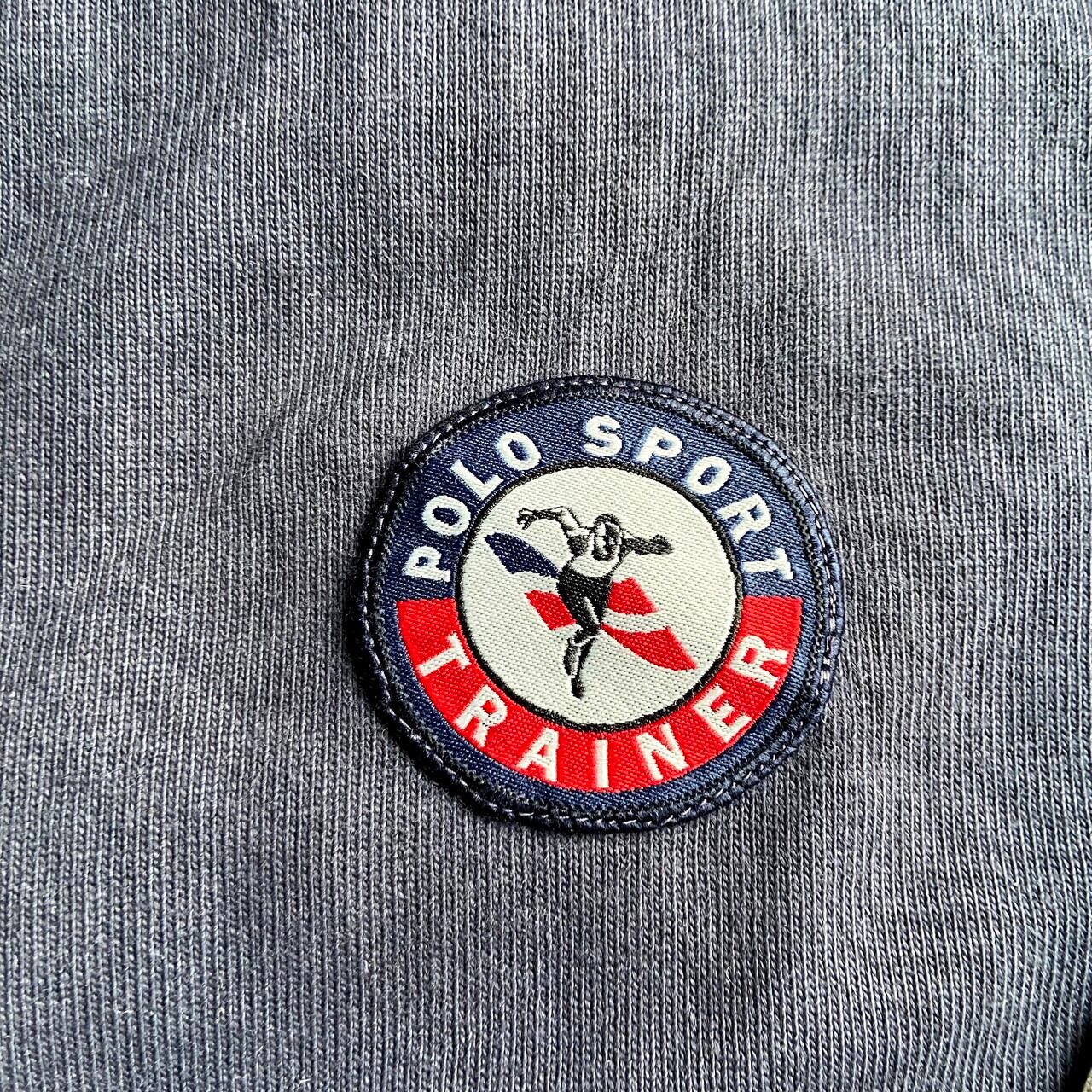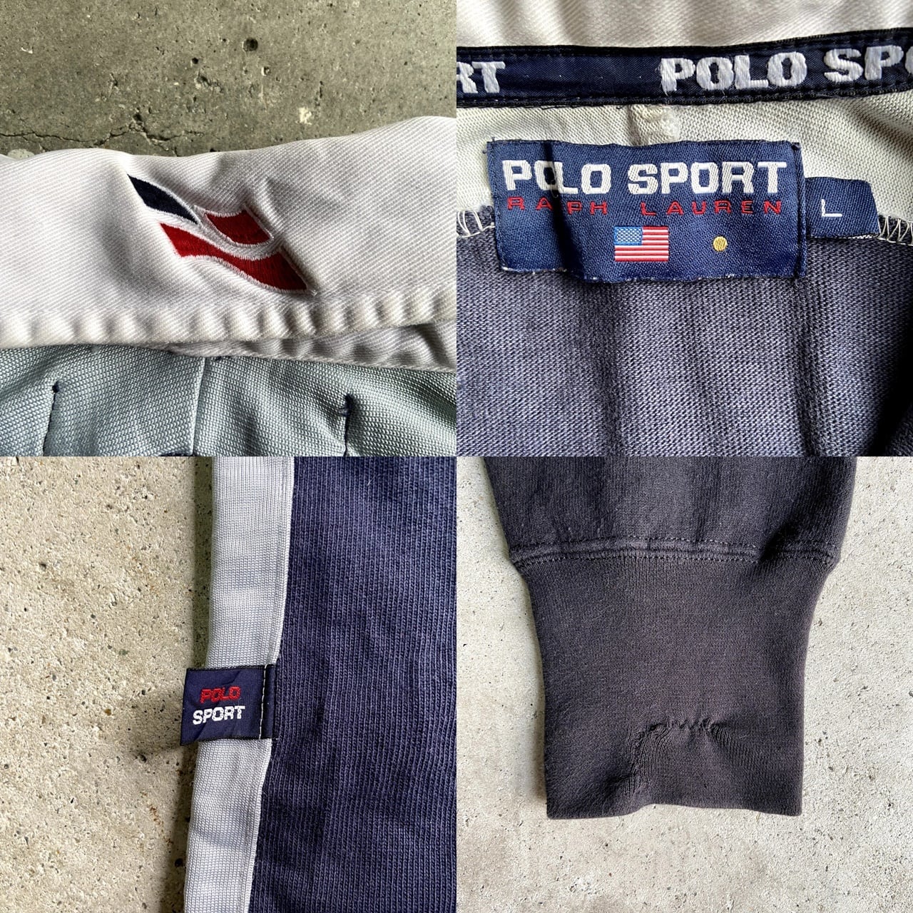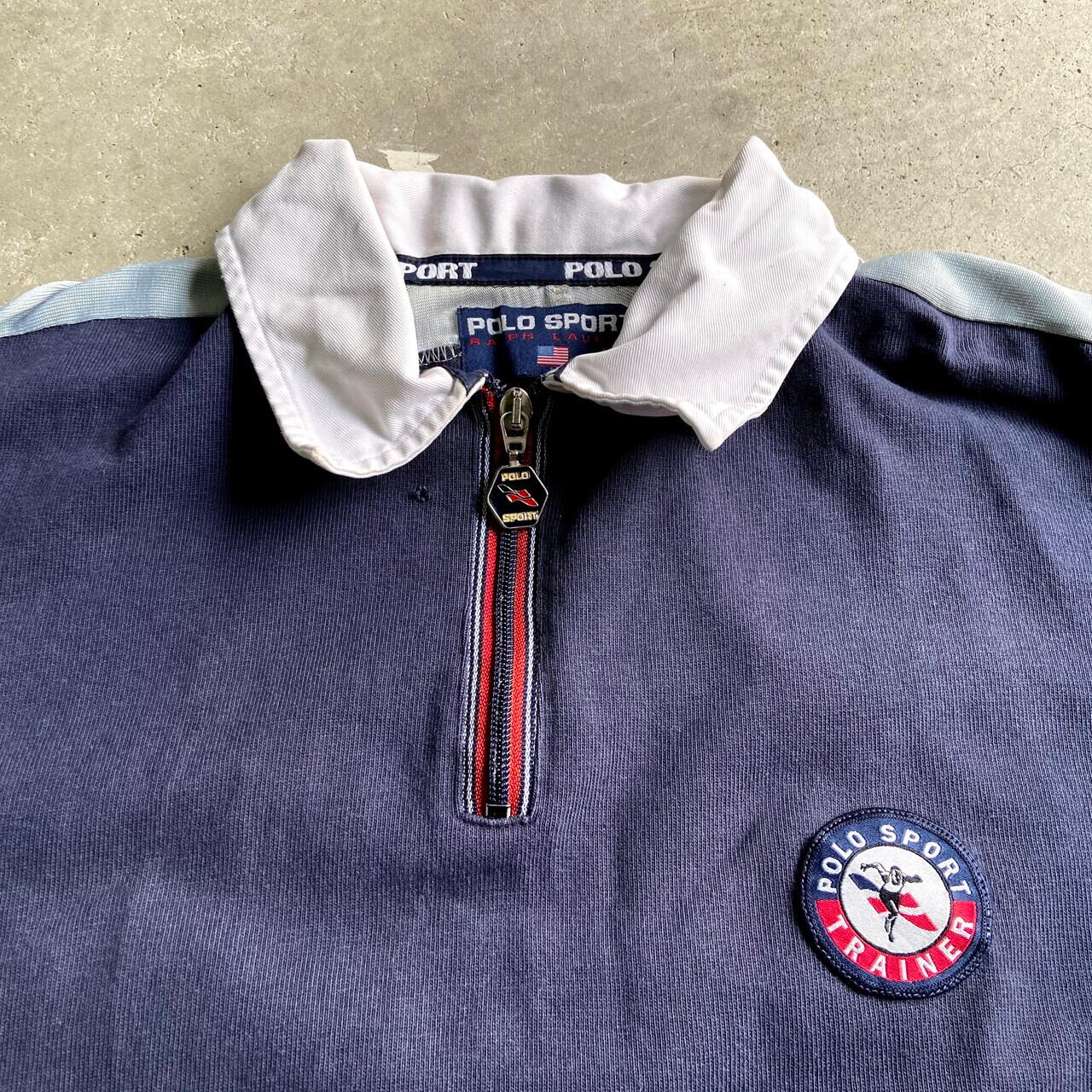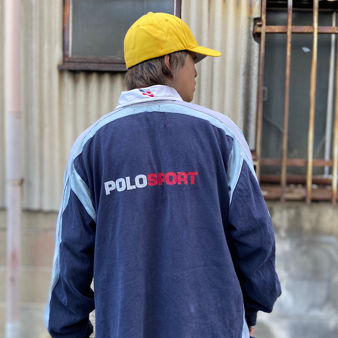 ■90年代 POLO SPORT TRAINER Ralph Lauren ポロスポーツ ラルフローレン ハーフジップ ラガーシャツ メンズXL相当 古着 90s ビンテージ ヴィンテージ ワッペン バックプリント ポロシャツ ネイビー 紺色【ポロシャツ・ラガーシャツ】