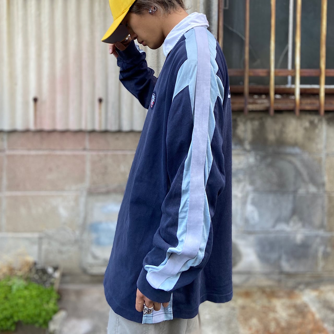 90年代 POLO SPORT TRAINER Ralph Lauren ポロスポーツ ラルフローレン ハーフジップ ラガーシャツ メンズXL相当 古着 90s ビンテージ ヴィンテージ ワッペン バックプリント ポロシャツ ネイビー 紺色【ポロシャツ・ラガーシャツ】