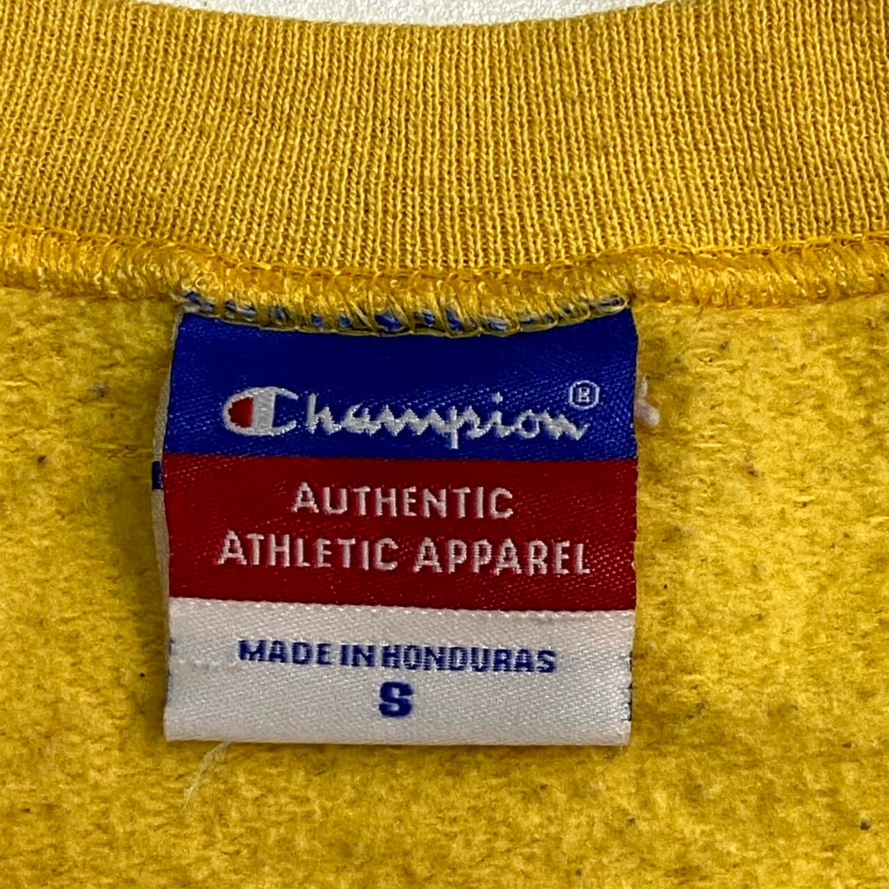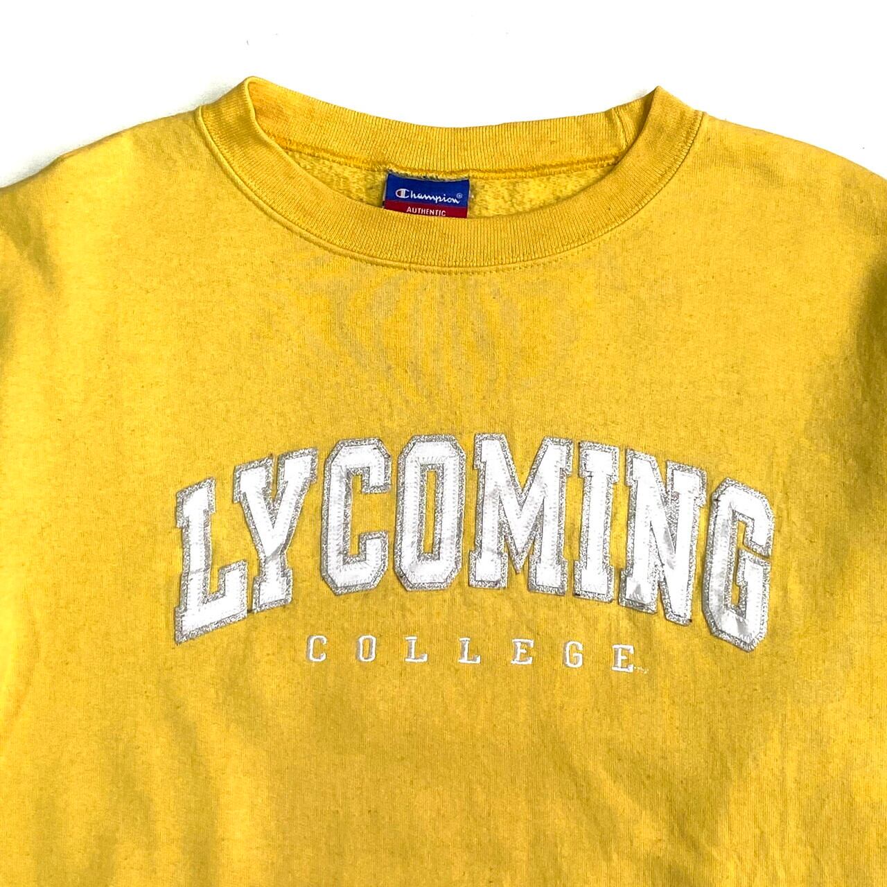 Champion チャンピオン LYCOMING カレッジロゴ ラメ入りワッペン スウェット トレーナー メンズM相当 古着 イエロー 黄色 【スウェット】【WS2201】