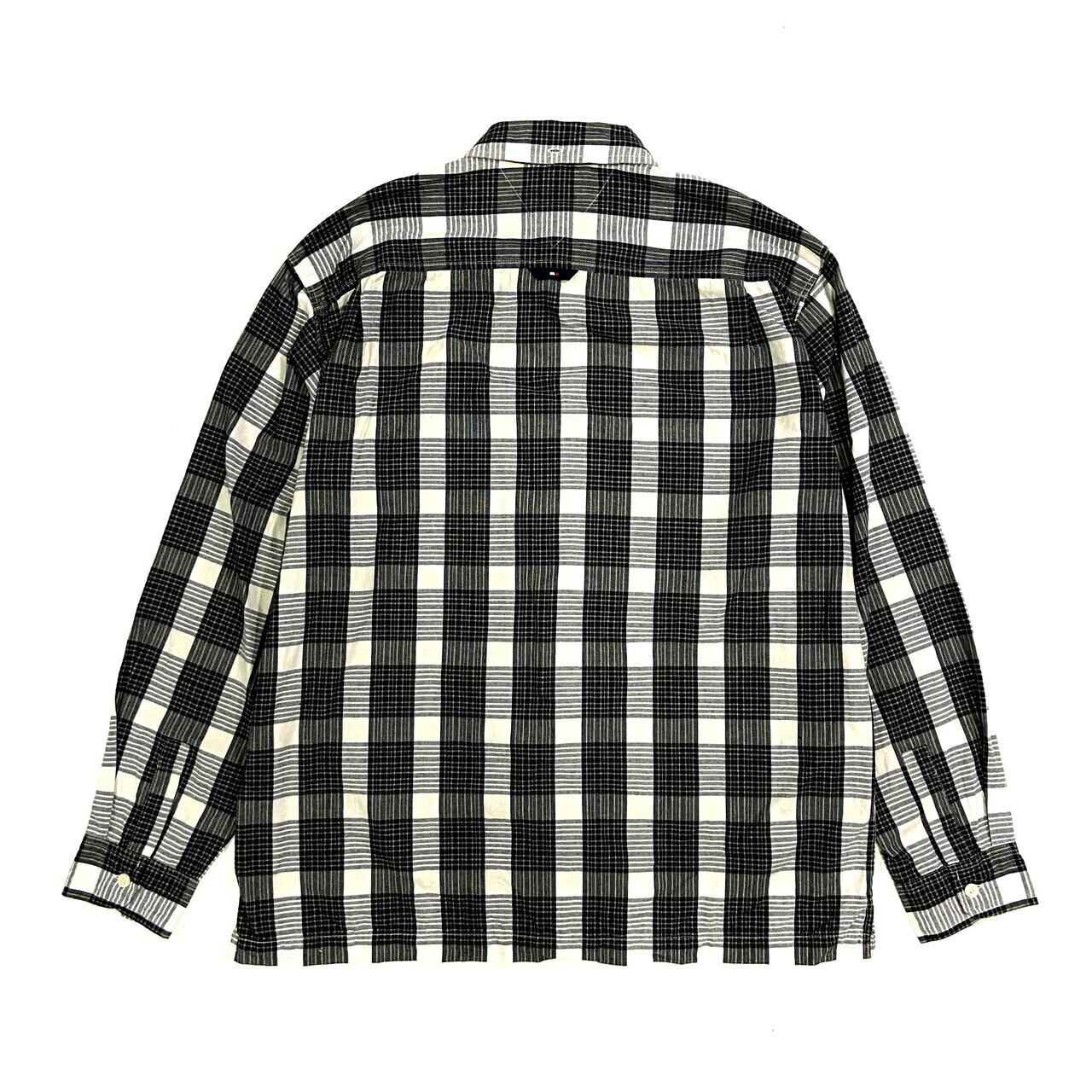 TOMMY JEANS トミーヒルフィガー 長袖 チェックシャツ メンズL相当 古着 ボタンダウンシャツ グリーン系 緑色【長袖シャツ】【WS2201】