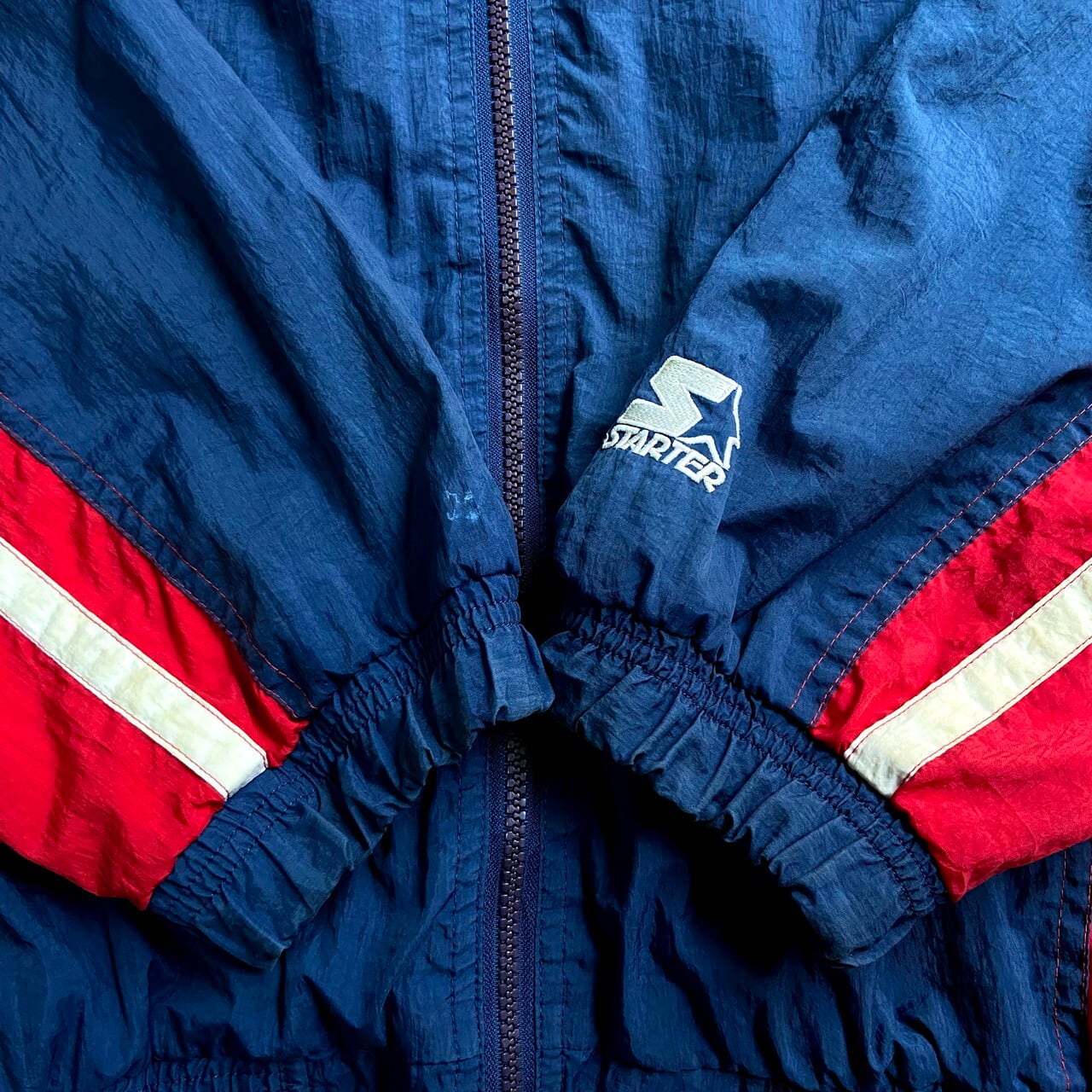 90年代 スターター Starter MLB CLEVELAND INDIANS クリーブランドインディアンス ナイロンジャケット メンズXL 古着 ウインドブレーカー ネイビー×レッド 紺×赤色 ワッペン 刺繍【ナイロンジャケット】