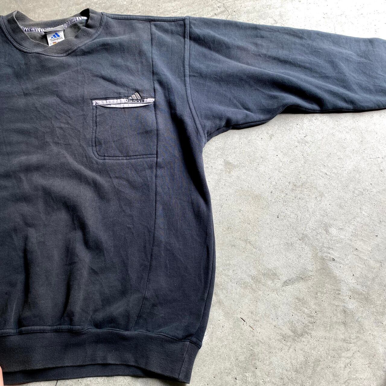 00年代 adidas アディダス フロント ロゴ 刺繍 スウェット メンズL 古着 00s ヴィンテージ ビンテージ トレーナーブラック 黒 胸ポケット【スウェット】【SW20】【AN20】