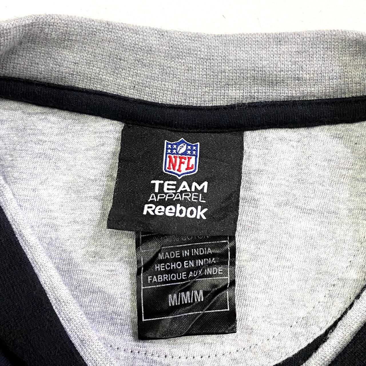 ■NFL TEAM APPAREL ロサンゼルス・レイダース フェイクレイヤード チームロゴ プリント ロングTシャツ メンズM 古着 RAIDERSブラック ライトグレー 黒 灰色 ロンT 長袖Tシャツ 【ロングTシャツ】