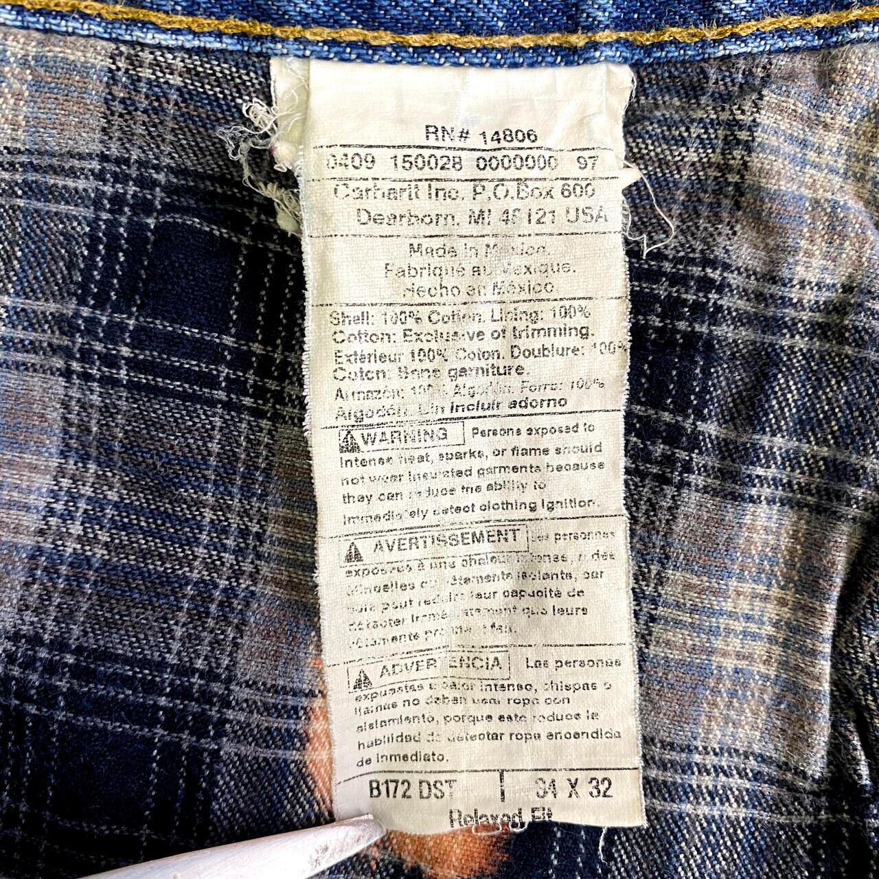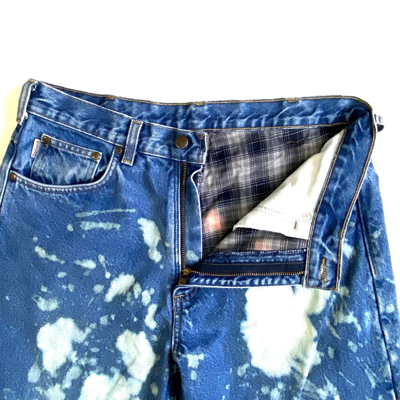 ■ Carhartt カーハート ブリーチ デニムパンツ ワークパンツ Relaxed Fit チェックライナーメンズ W34 古着 リメイク【デニムパンツ】