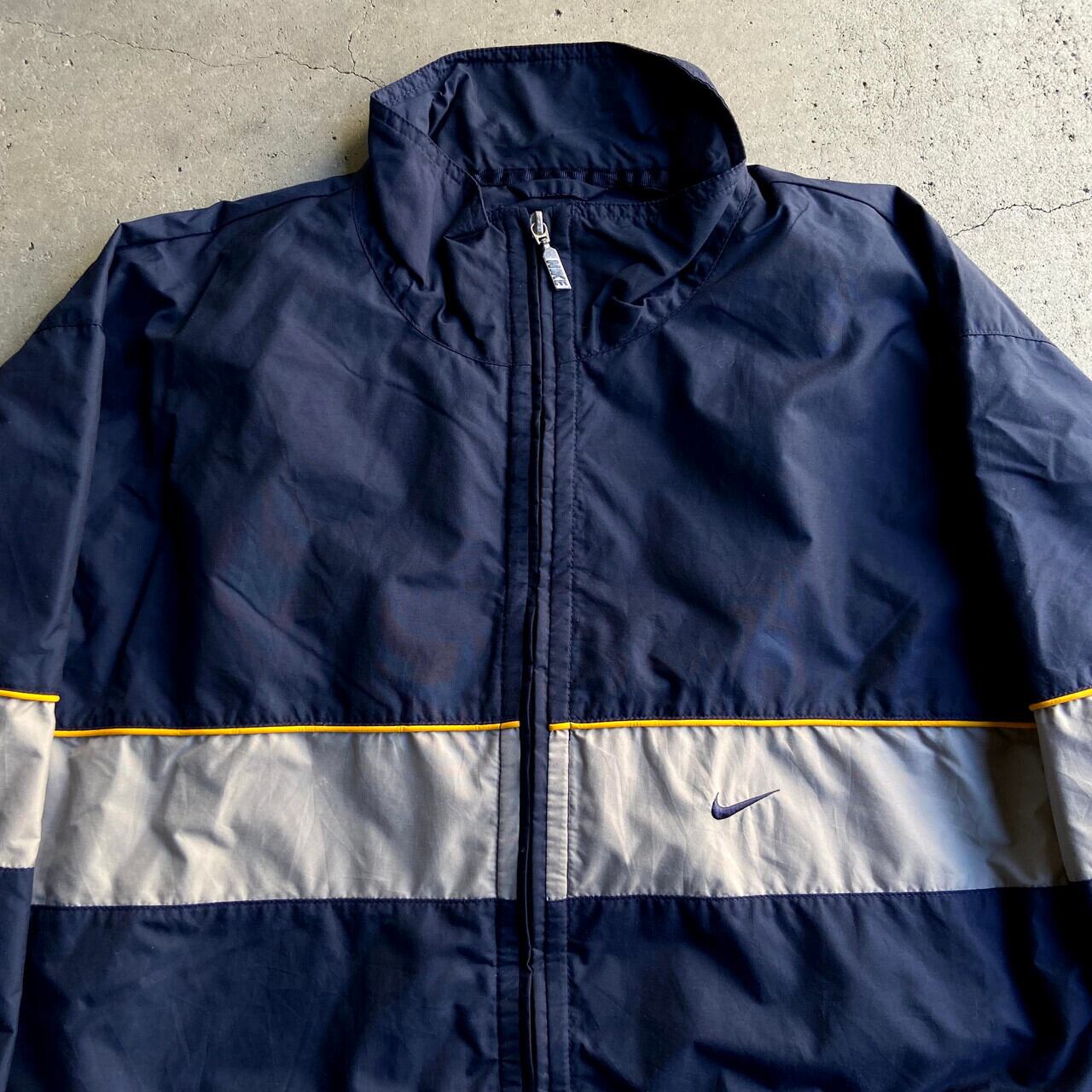 ビッグサイズ NIKE ナイキ スウォッシュロゴ刺繍 ナイロンジャケット メンズXL 古着 リフレクター ネイビー 紺色 大きいサイズ 【ナイロンジャケット】【WS2202-15】