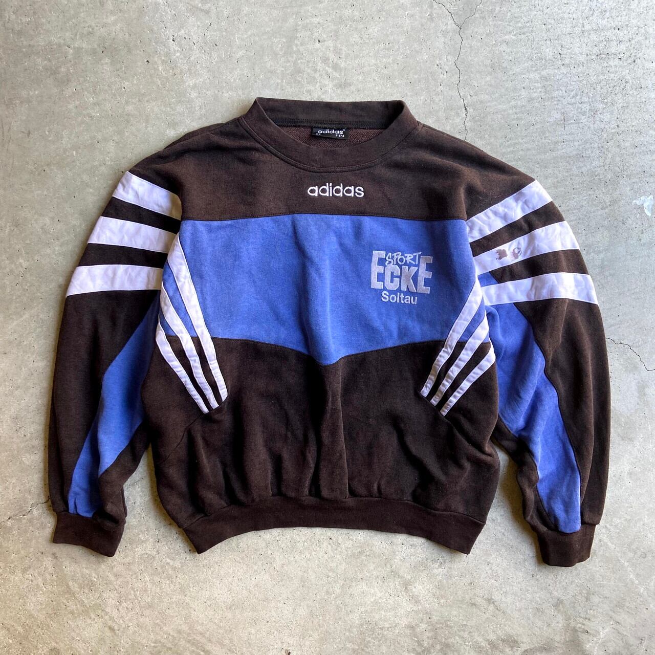 80〜90年代 アディダス adidas フロントロゴ刺繍 バックプリント スウェットシャツ フロッキープリントメンズL相当 ヴィンテージ 古着 ビンテージ 80S 90S トレーナー【スウェット】【CS2301-30】