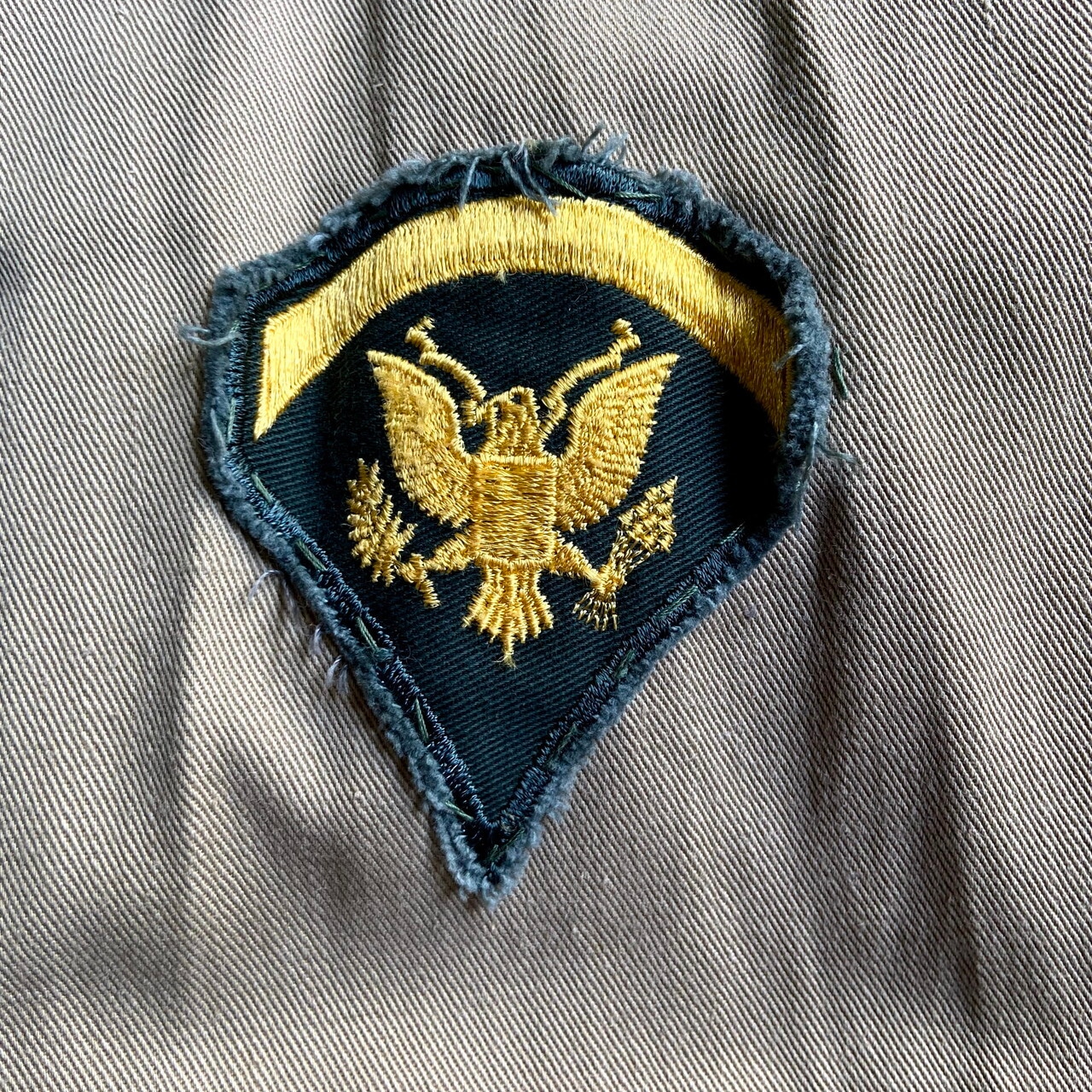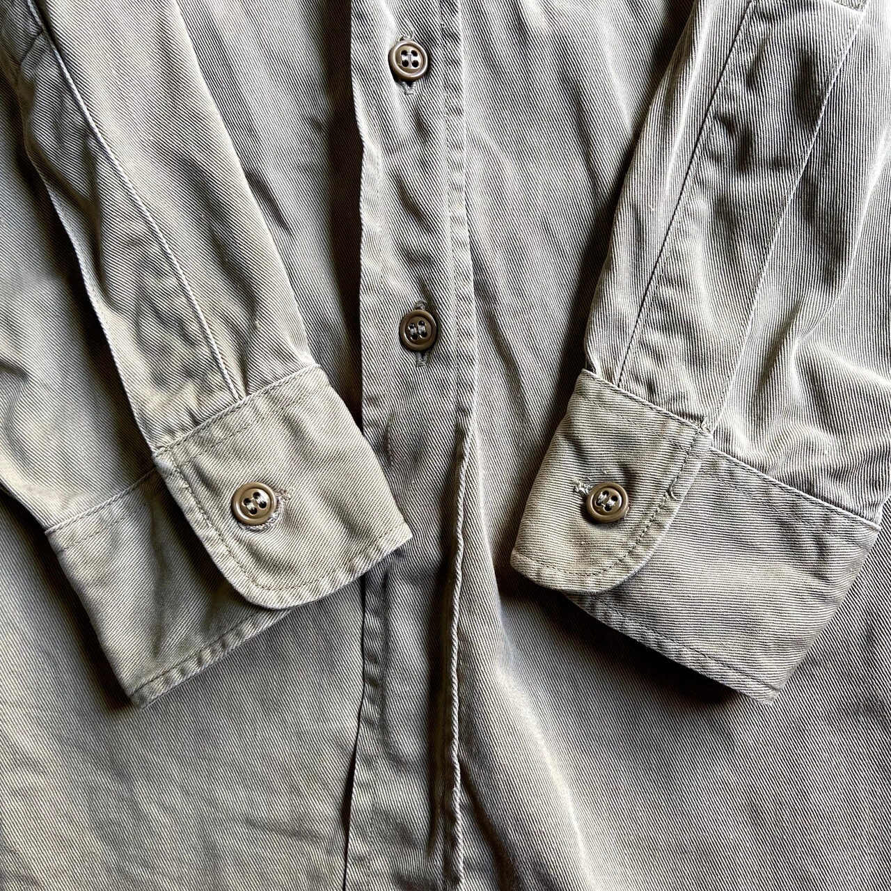 ■50年代 米軍実品 U.S.ARMY 長袖 コットンツイル ミリタリーシャツ メンズM-L相当 古着 ステンシル入り 50s ヴィンテージ ビンテージ カーキ ベージュ 【長袖シャツ】