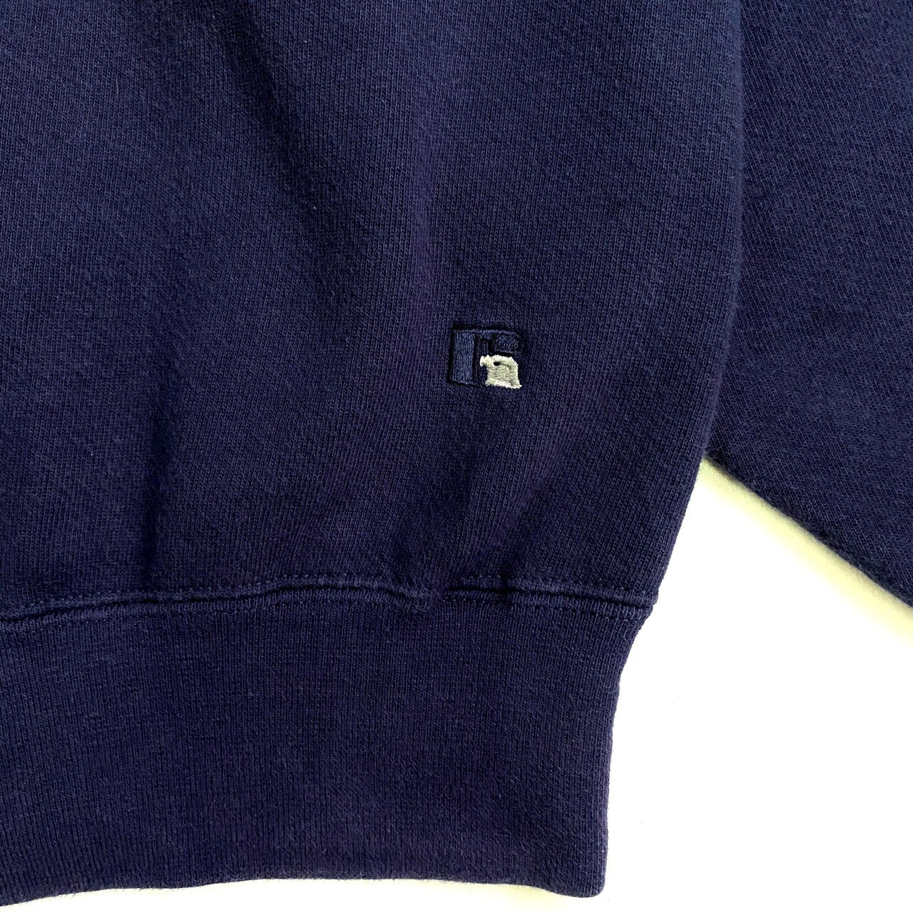 ■USA製 90年代 RUSSELL ATHLETIC ラッセル アスレチックス カレッジ ロゴ プリント スウェット メンズM 古着 ガゼット トレーナー ビンテージ 90S ネイビー 紺色 【スウェット】