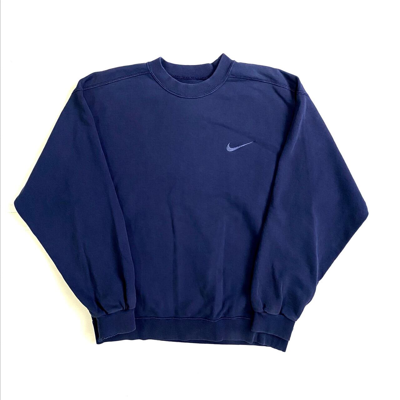 ■ 90年代 NIKE ナイキ スモールスウォッシュ ワンポイントロゴ 刺繍 スウェット トレーナー メンズS 古着 90s ビンテージ ヴィンテージ ネイビー 紺色【スウェット】