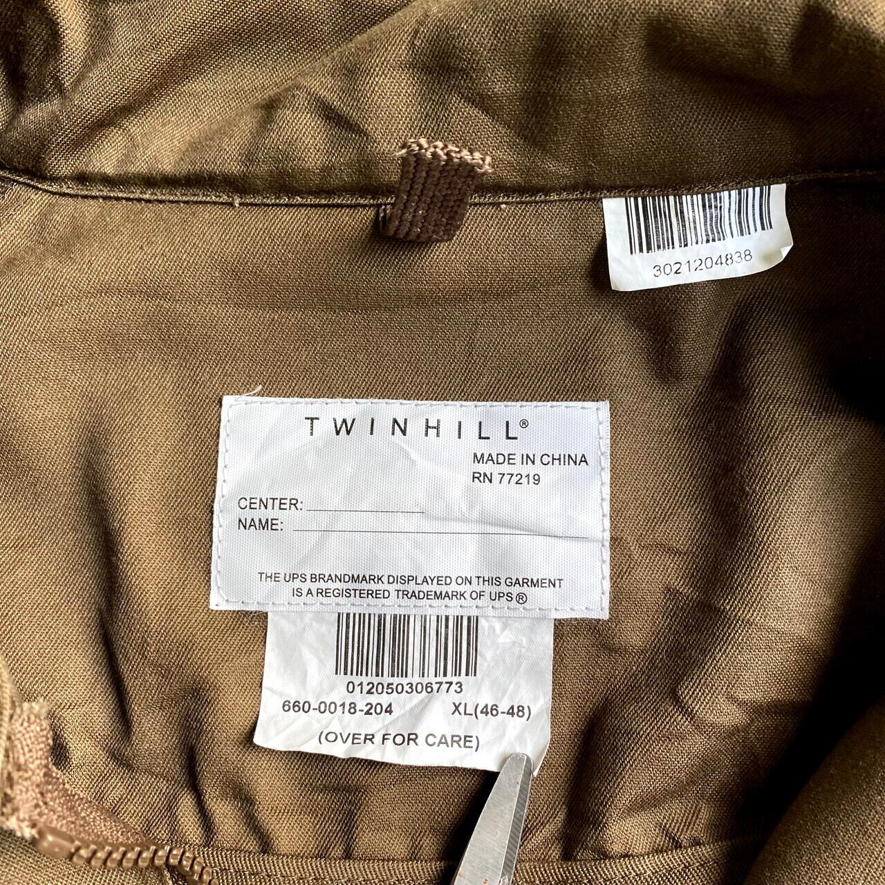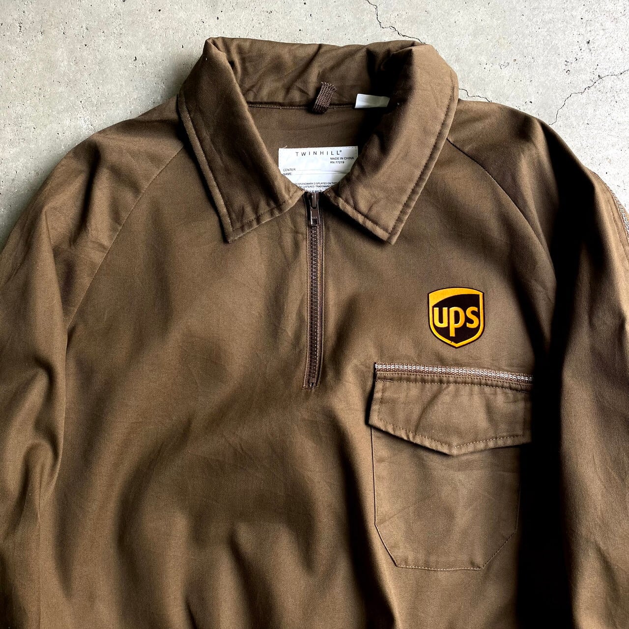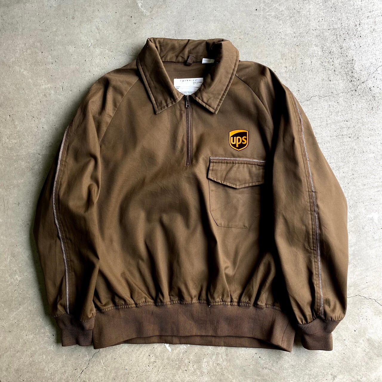 ■TWINHILL 企業ロゴ Ups ハーフジップ プルオーバー ワークジャケット メンズXL 古着 リフレクター ブラウン 茶色【ワークジャケット】