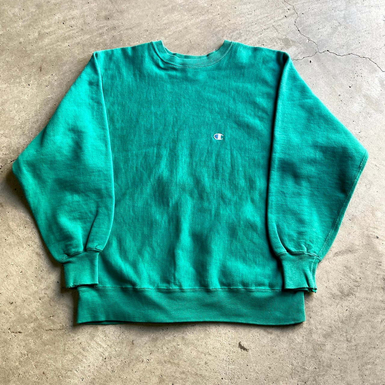 90年代 チャンピオン 刺繍タグ ワンポイントロゴ リバースウィーブ メンズS相当 レディースM相当 古着 USA製 Champion REVERSE WEAVE 90S ビンテージ ヴィンテージ スウェット トレーナー エメラルドグリーン 緑色【スウェット】【AL2109】