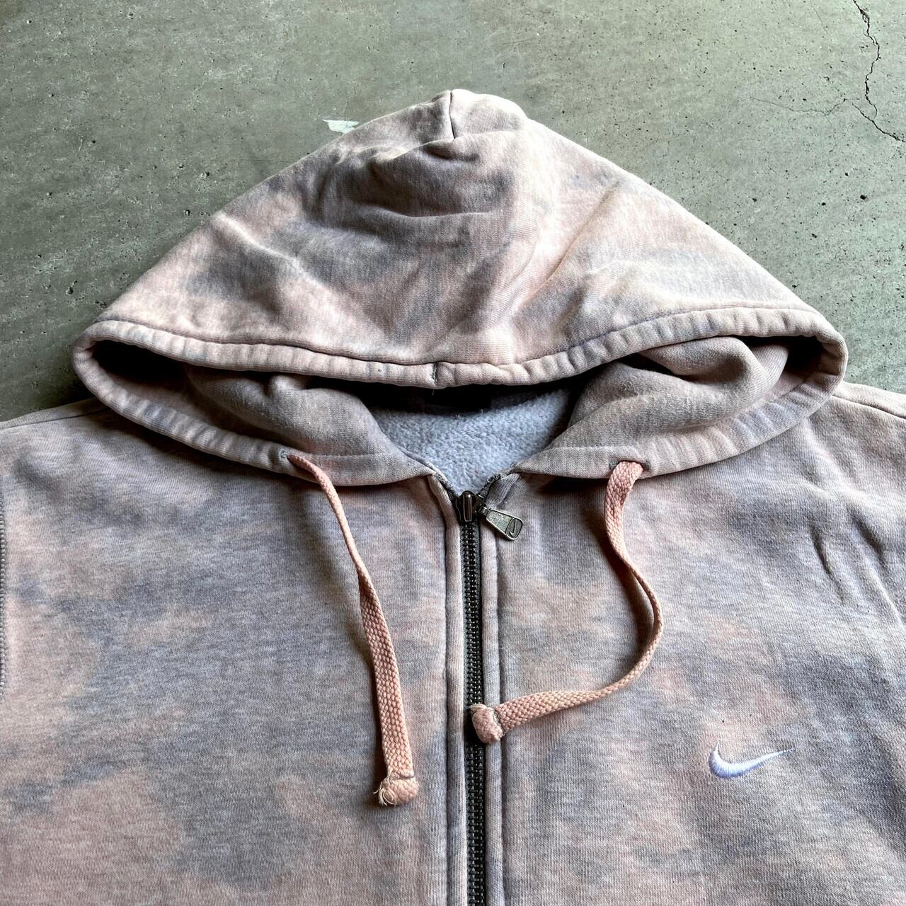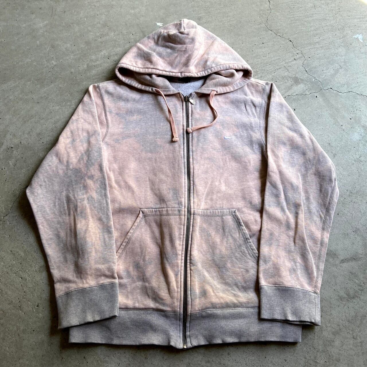 NIKE ナイキ スモールスウォッシュ ワンポイントロゴ刺繍 フルジップパーカー メンズL 古着 スウェットパーカー ブラウン系 茶色 後染め【パーカー】【P2000】