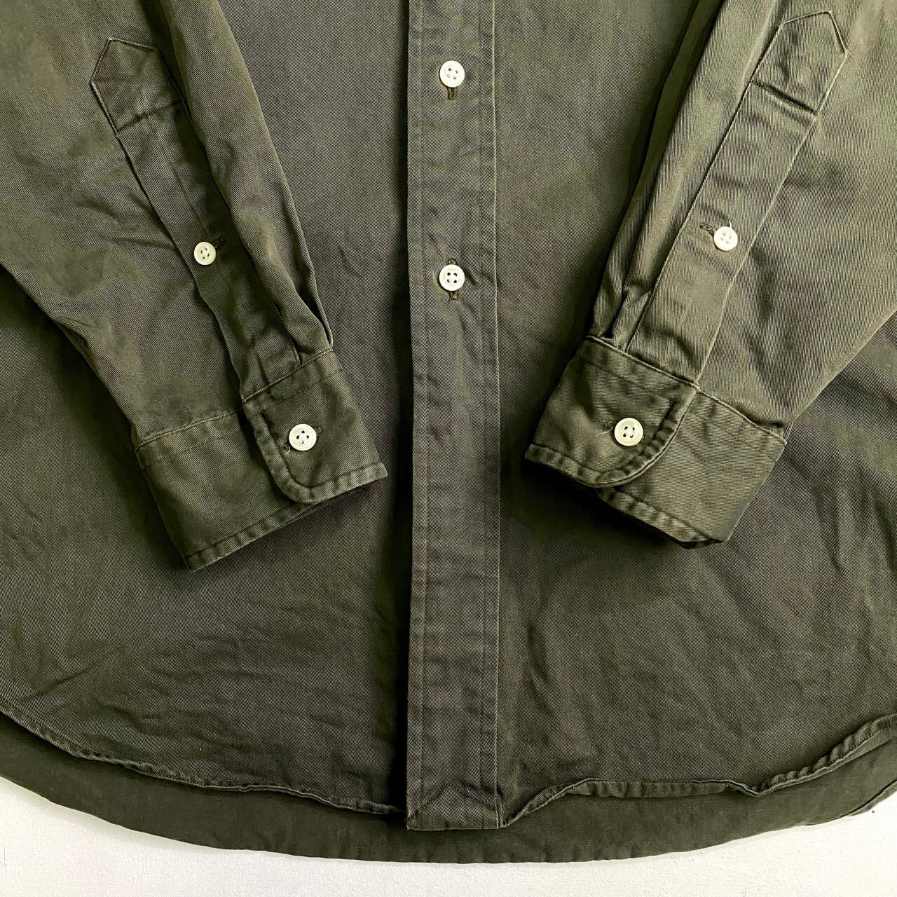 ■Ralph Lauren ラルフローレン 長袖 無地 コットンツイルシャツ メンズL相当 古着 ボタンダウンシャツ B.Dシャツ ミリタリーグリーン 緑【長袖シャツ】